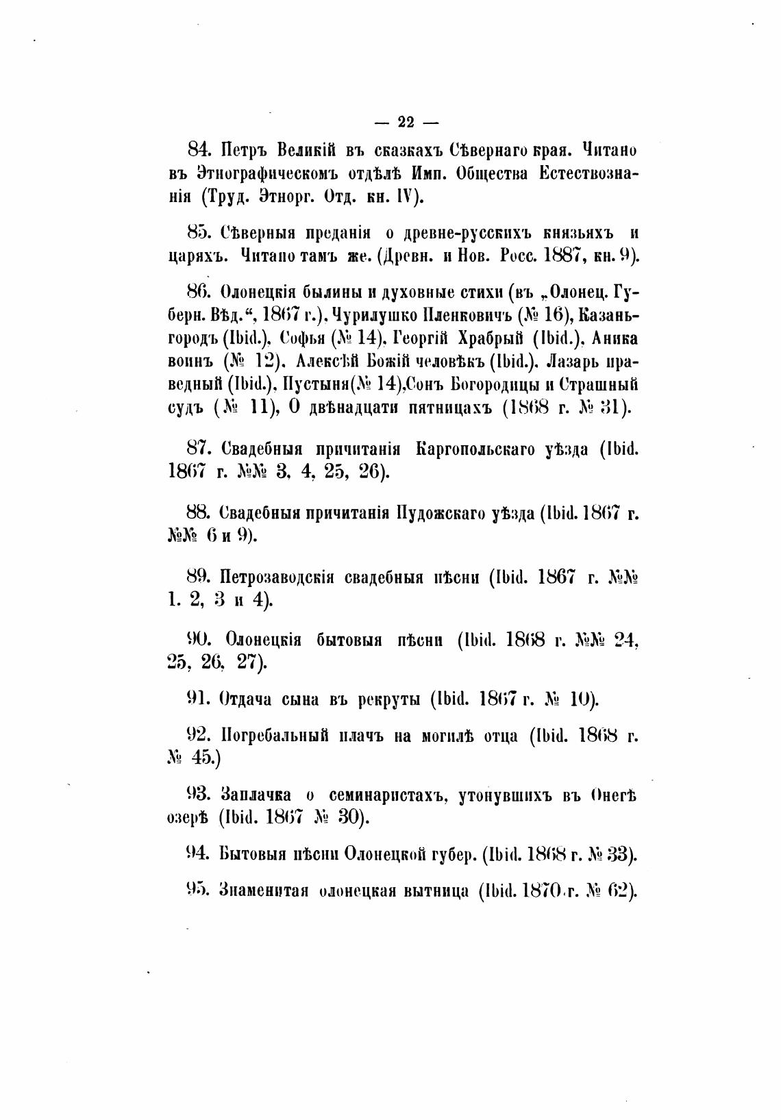 94. Бытовыя 11'Всни Олонецкой губер. (lbid. 1868 г. 33).
