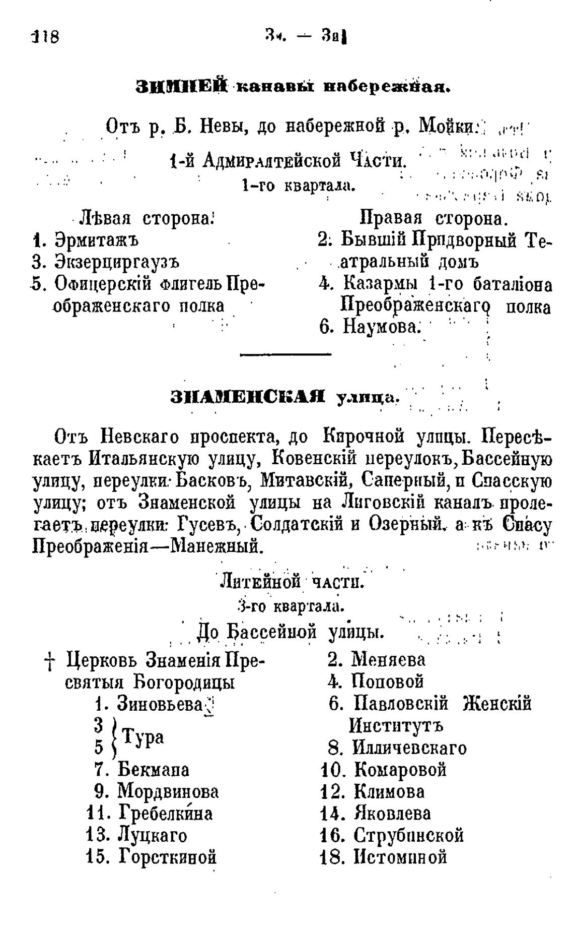 улицу; отъ Знаменской улицы на каналь проле-