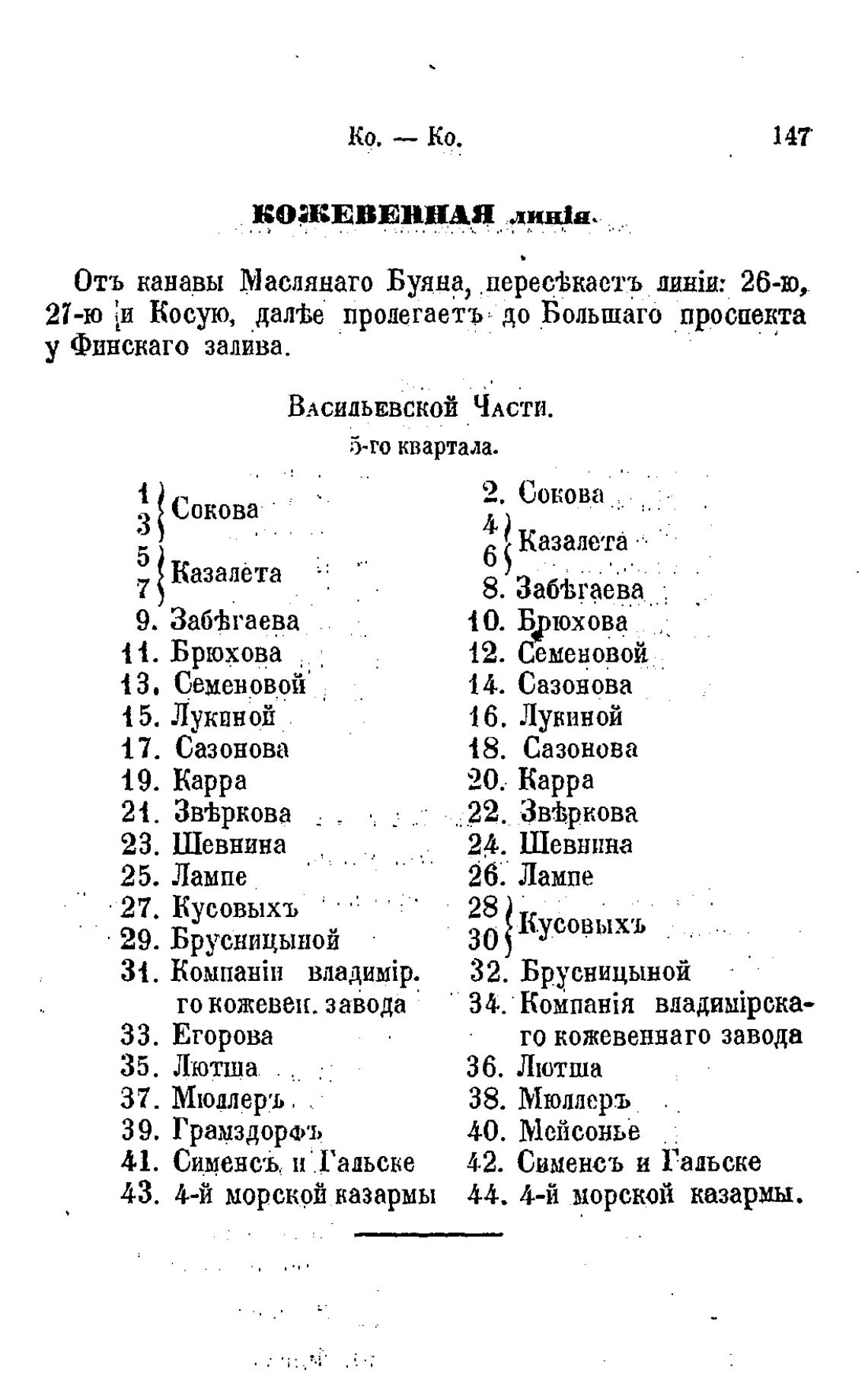 21-ю [и Косую, дашЬе пропетаетъ до Большаго проспекта