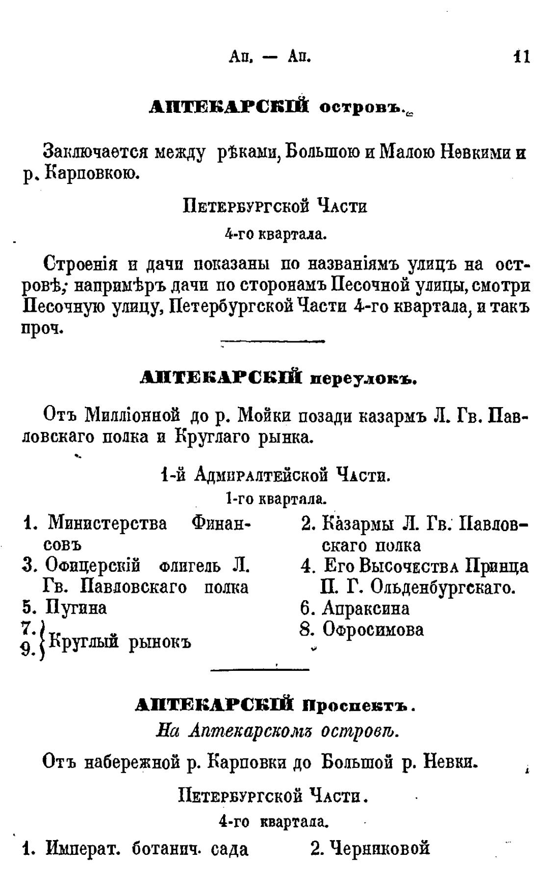 АПТЕКАРСКМ переулокъ.