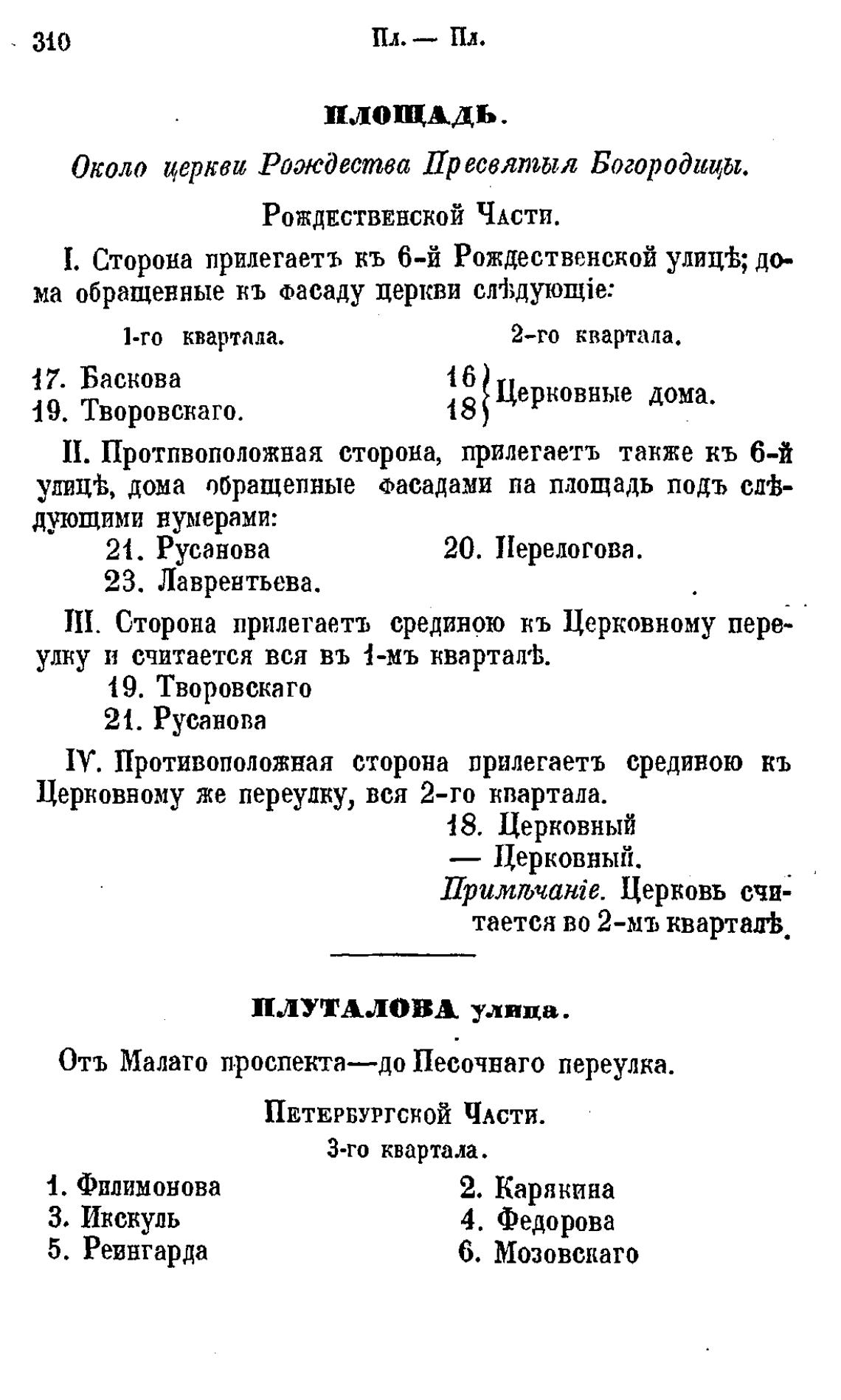 Церковному же переудку, вся 2-го квартала.