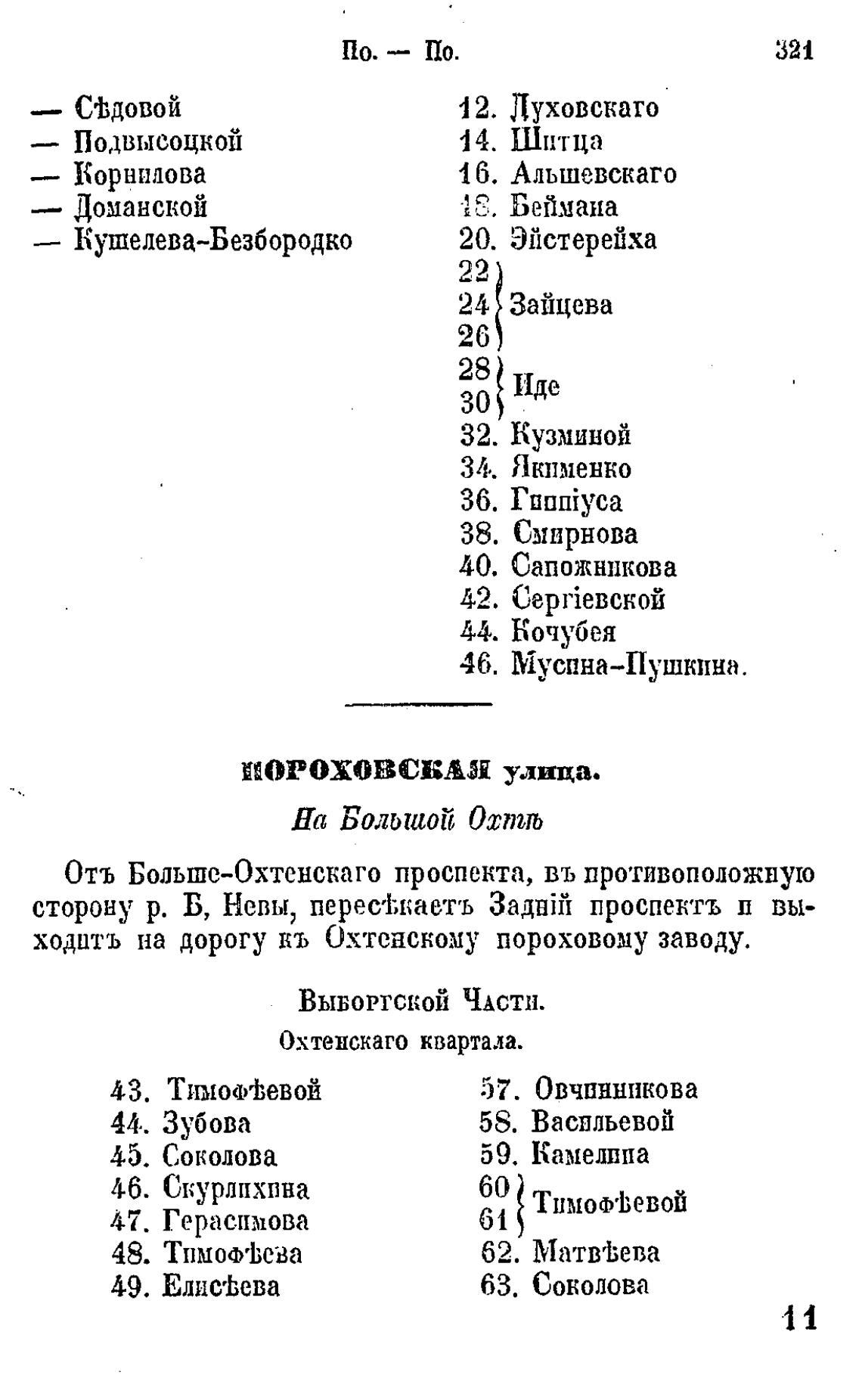 ходить на дорогу кь Охтенскому пороховому заводу.