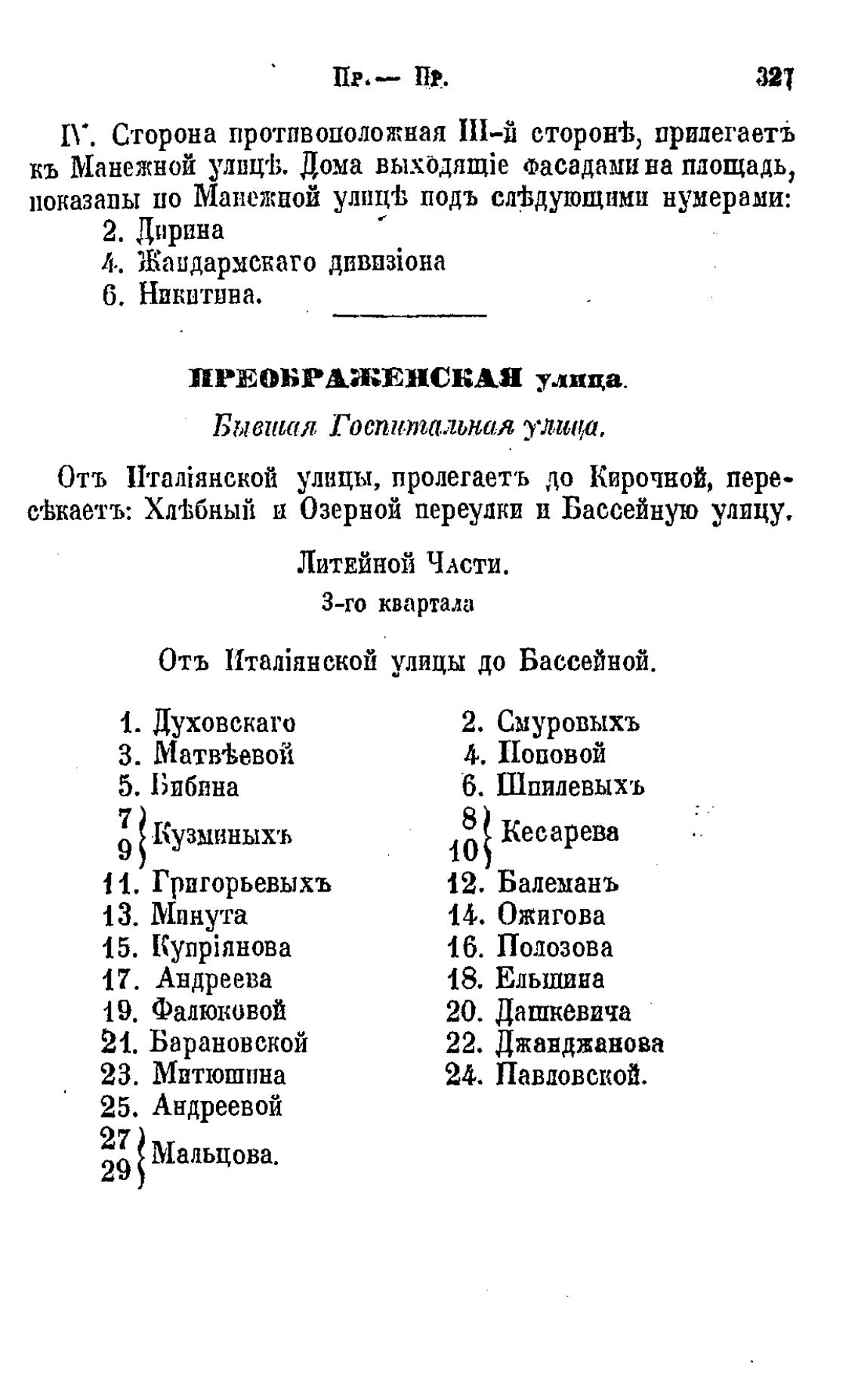 показапы но Манежпой улпцгЬ подъ сл'ђдушщими нумерами:
