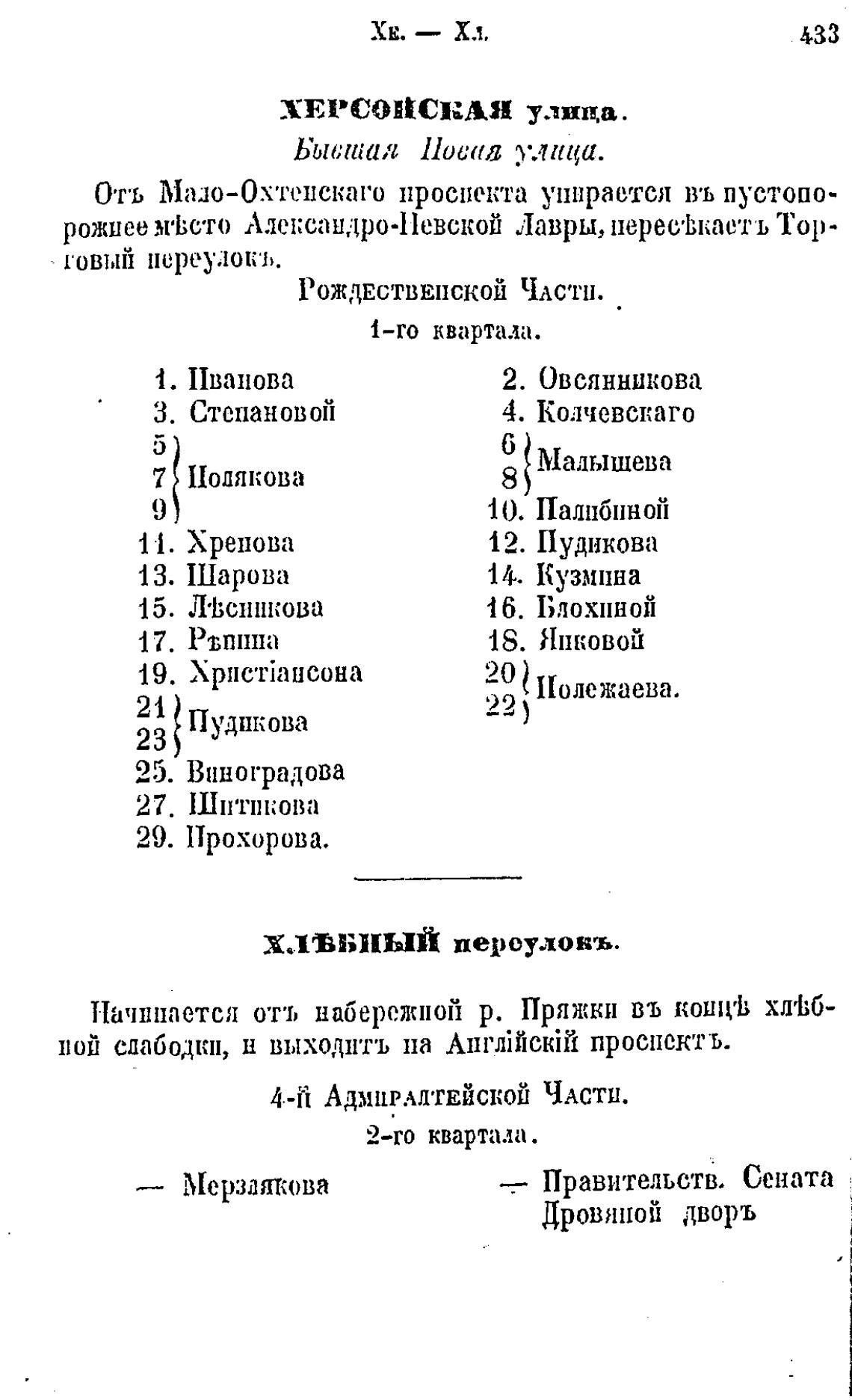хлЫ;иьий переулонъ.