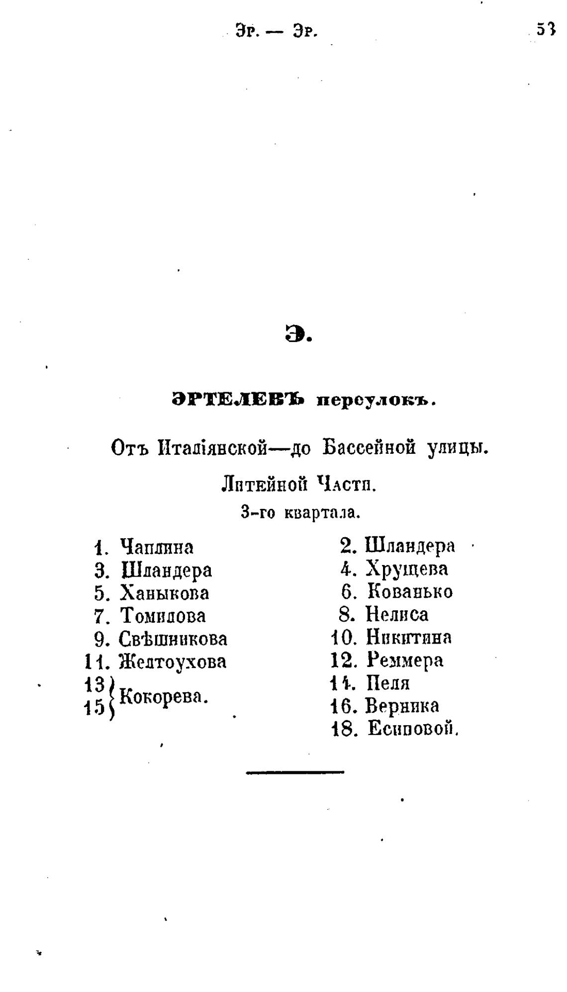 ЭРТЕЛЕВЪ переулокъ .