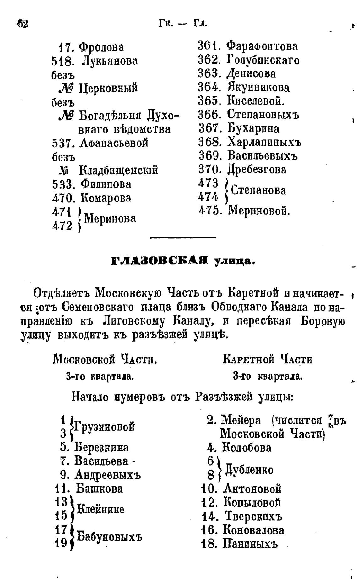 ГЛАЗОВСКАЯ улица,