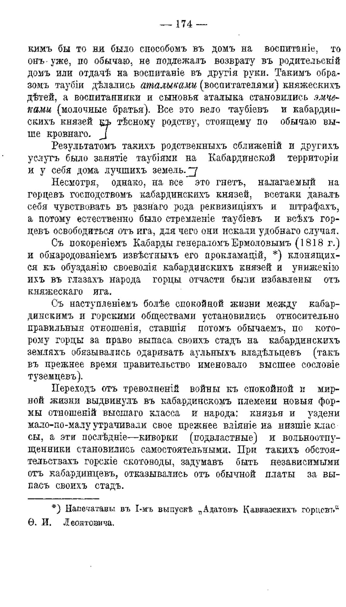 * ) Напечатаны въ Г-мъ выпускеВ „Адатовъ Кавказекихъ горцсвт,