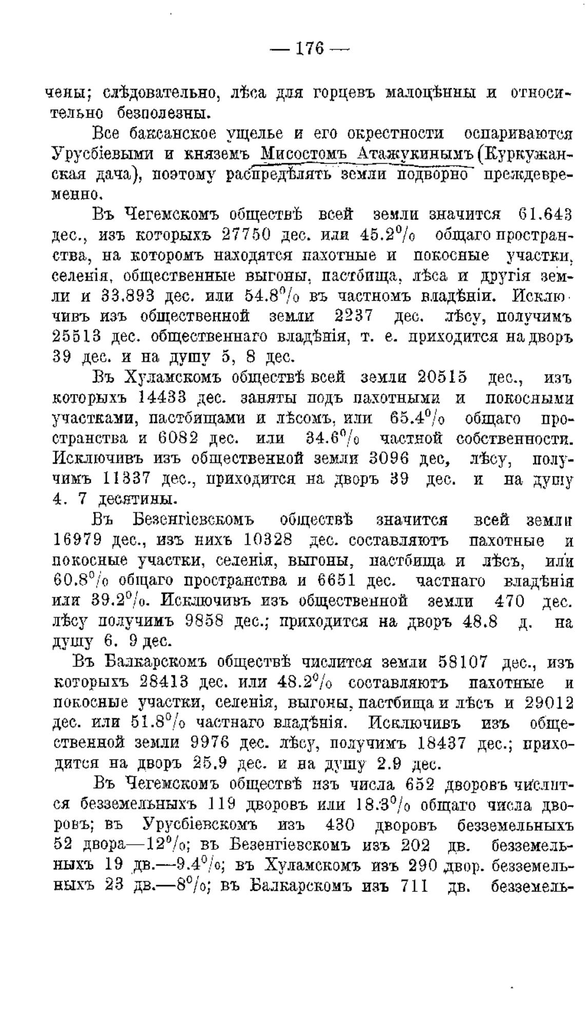 ныхъ 23 дв.—80/о; въ Балкарскомъ изъ 711 дв. безземель-