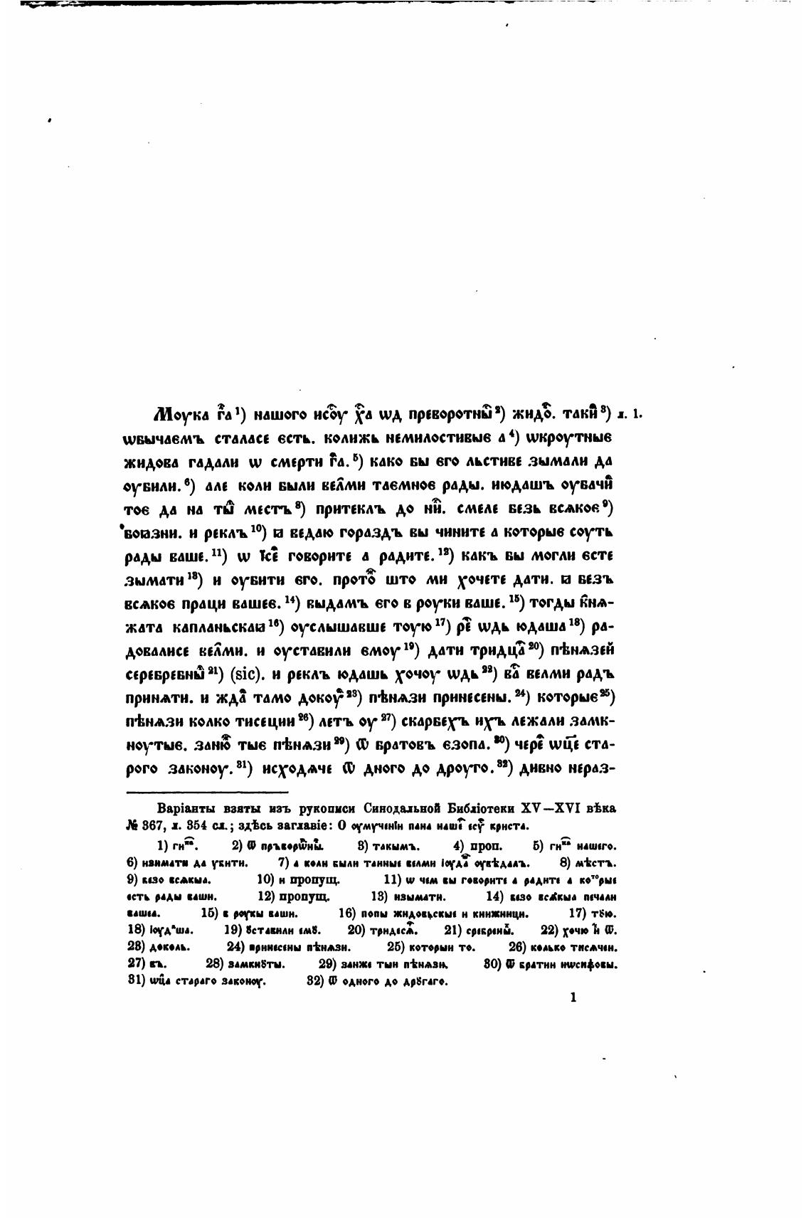 BapiBHN пяты изъ рукописи Синодиьвой XV—XVI ввка