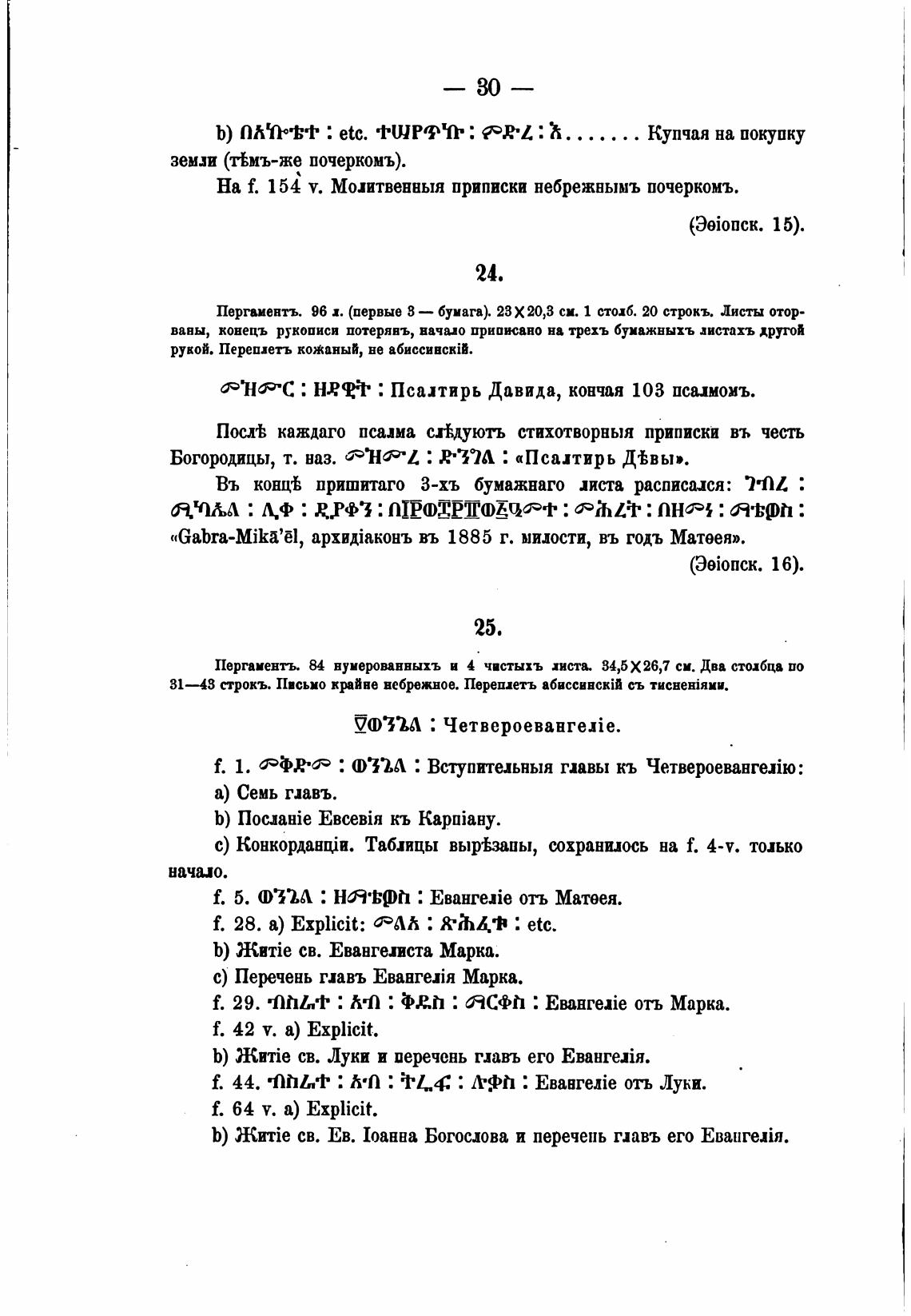 31—43 строкъ. Письмо врИне небрежное. Перепдетъ абиссивскТ съ тисненЈяии.