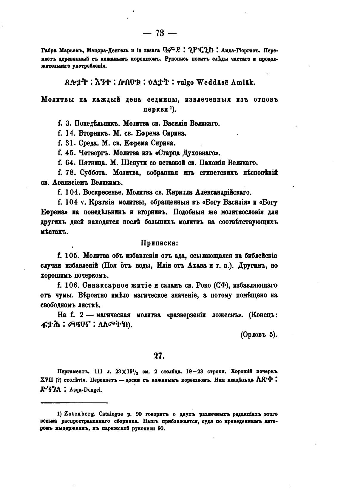 1) Zoten berg. Catalogue р. творить о двухъ раздичныхъ редавфхъ этот