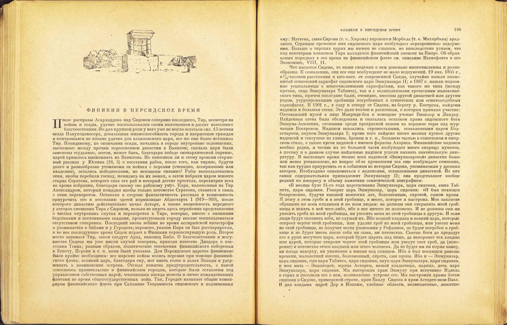 саркофагах. В 1901 г., в саду к северу от Сидона, па берегу р. Бострена, найдены