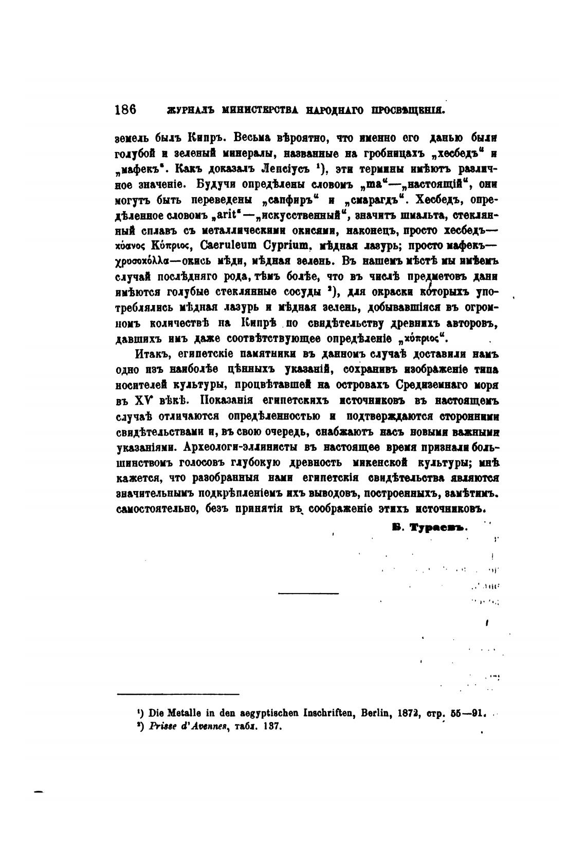 1) Те Metalle in den aegyptischen Inschriften, Berlin, 1872, стр. 56—91.