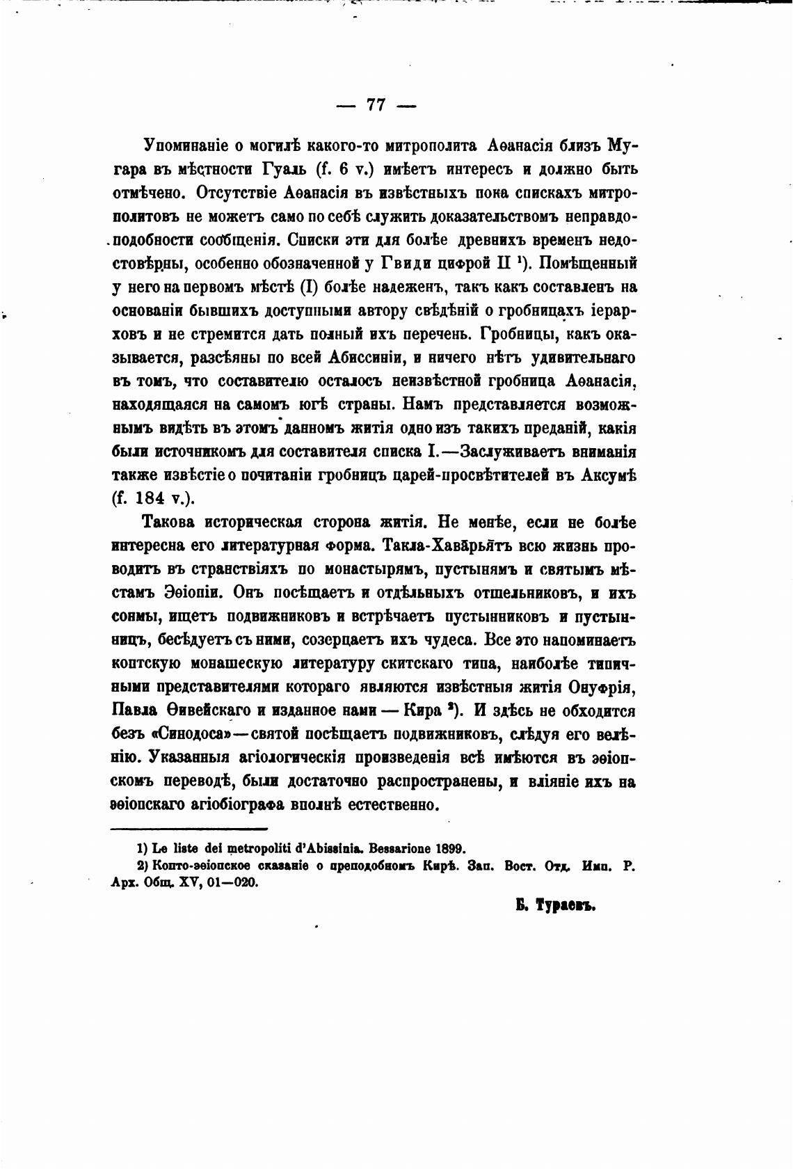 1) Le dei metropoliti d'Abiuinia. Bessuione 1899.
