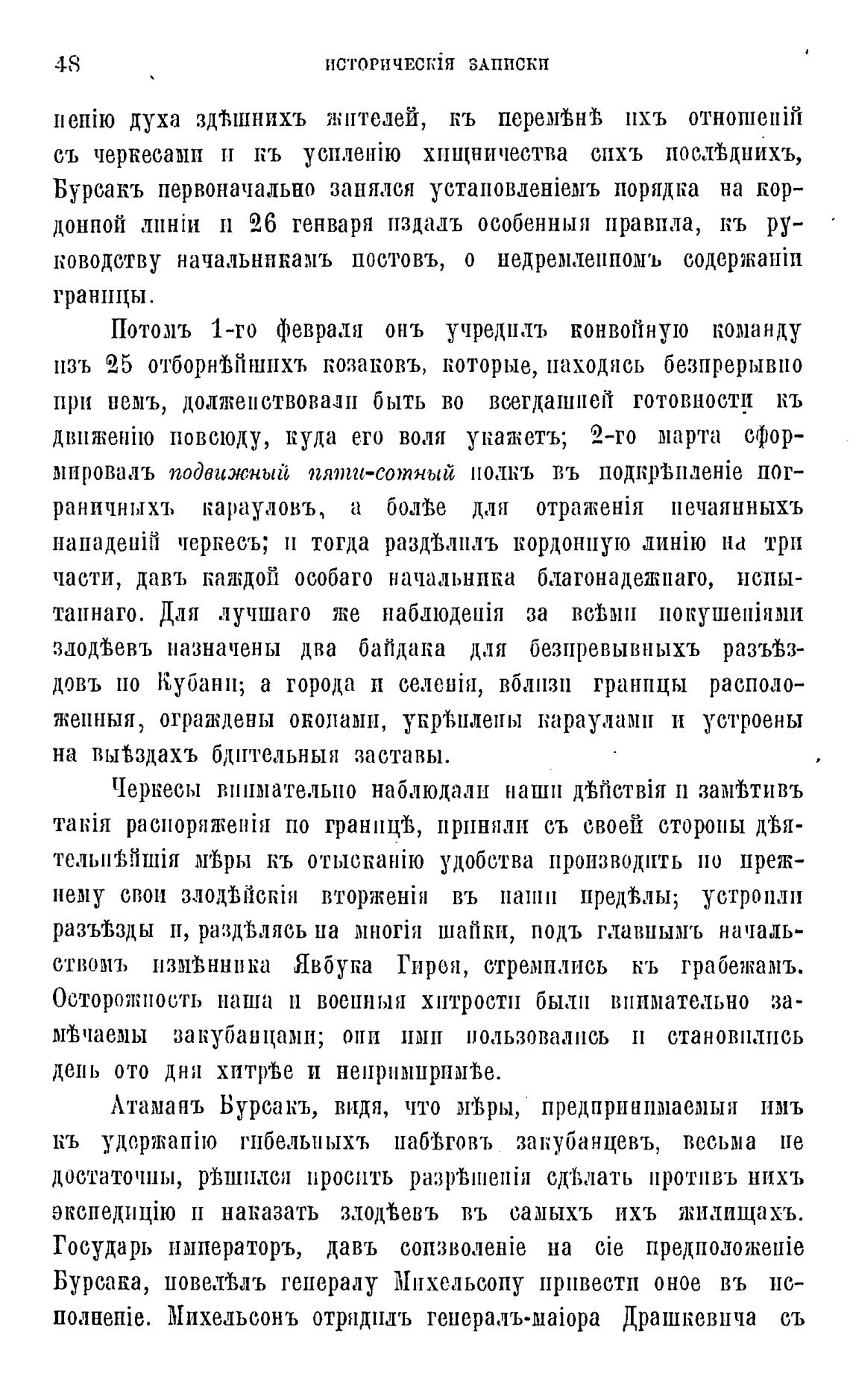 нападенТ черкесъ; и тогда раздгВлилъ кордонную на три
