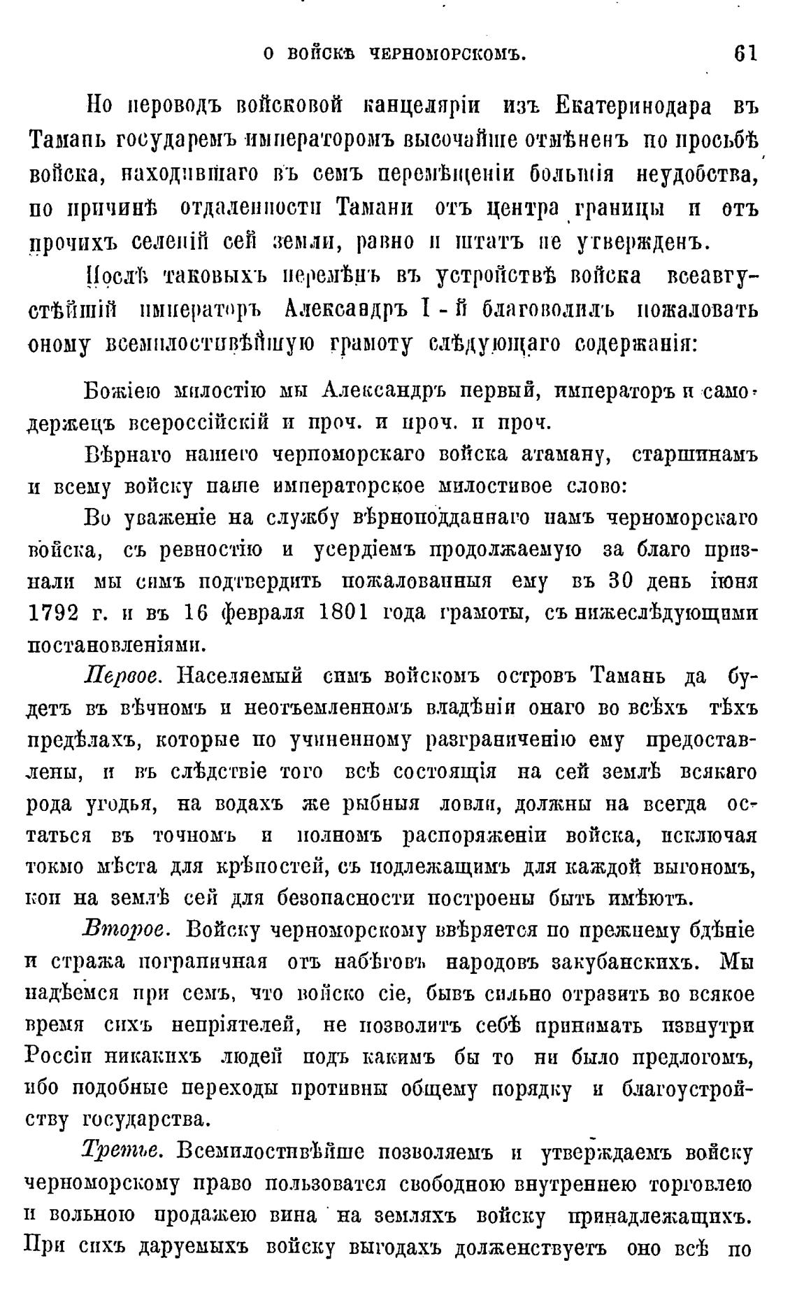 Второе. Войску черноморскому вуЬряется по прежнему 6;vhHie