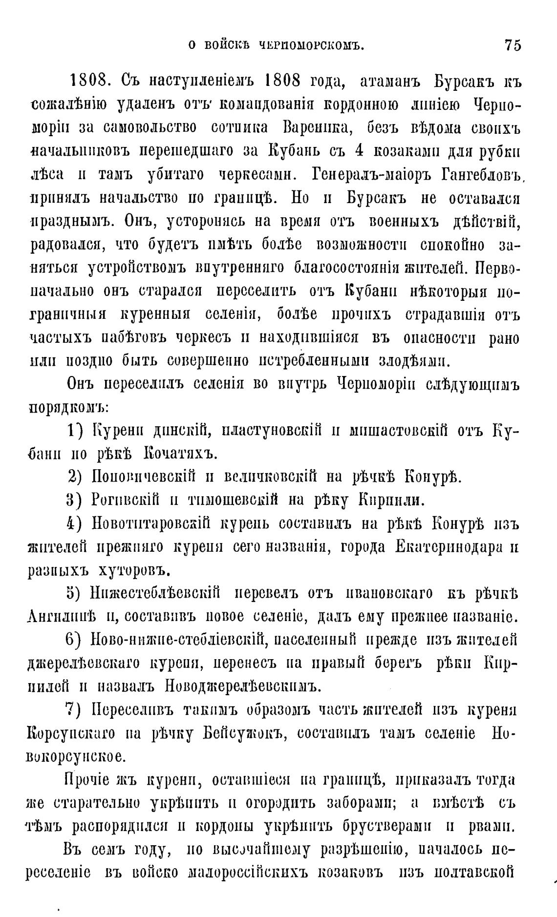 1808. Съ HacTY11deHieM'b 1808 года, атамань Бурсакъ кь