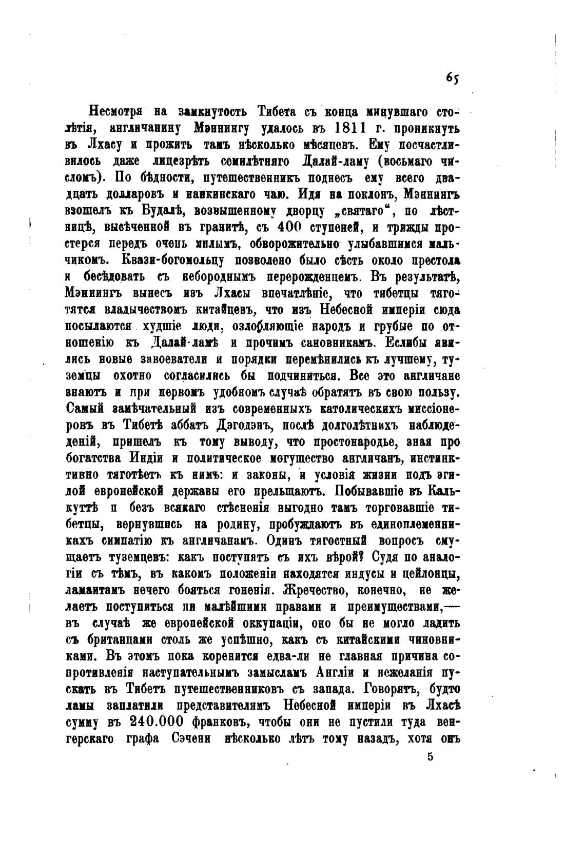 Мэннингь вынесъ ивъ Лхасы впечат.тьте, что тибетцы тяго-