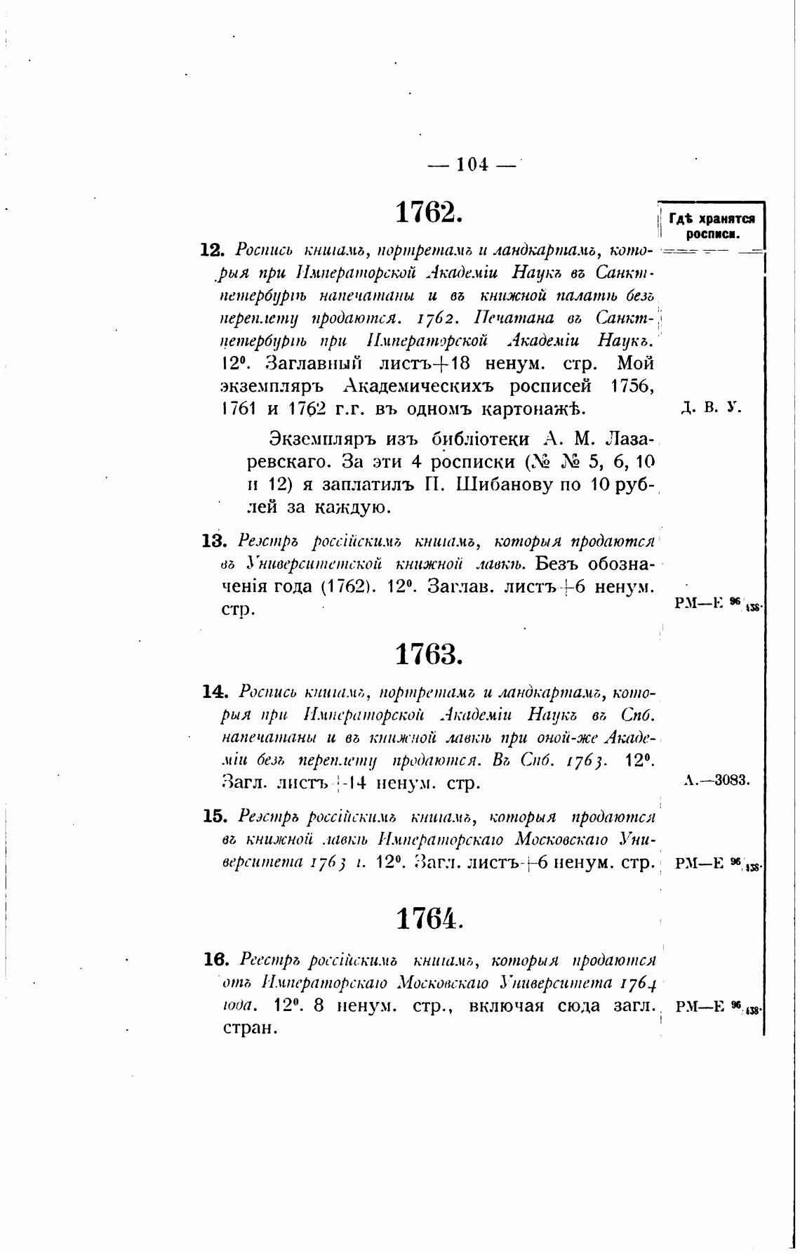 экземпляръ Академическихъ росписей 1756,
