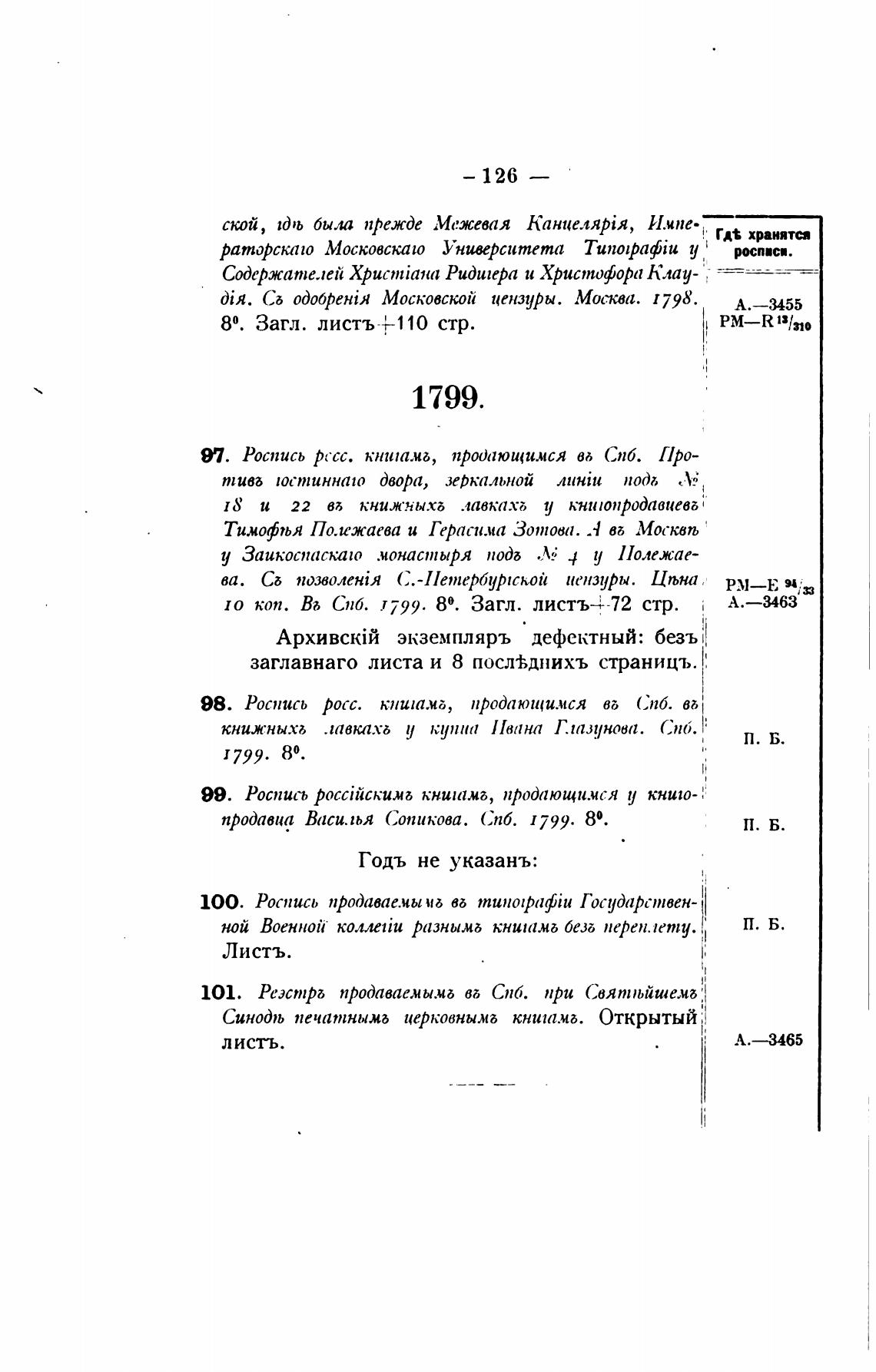 97. Роспись рссс. книтмд, продающимся вь СПб. [Ipo-