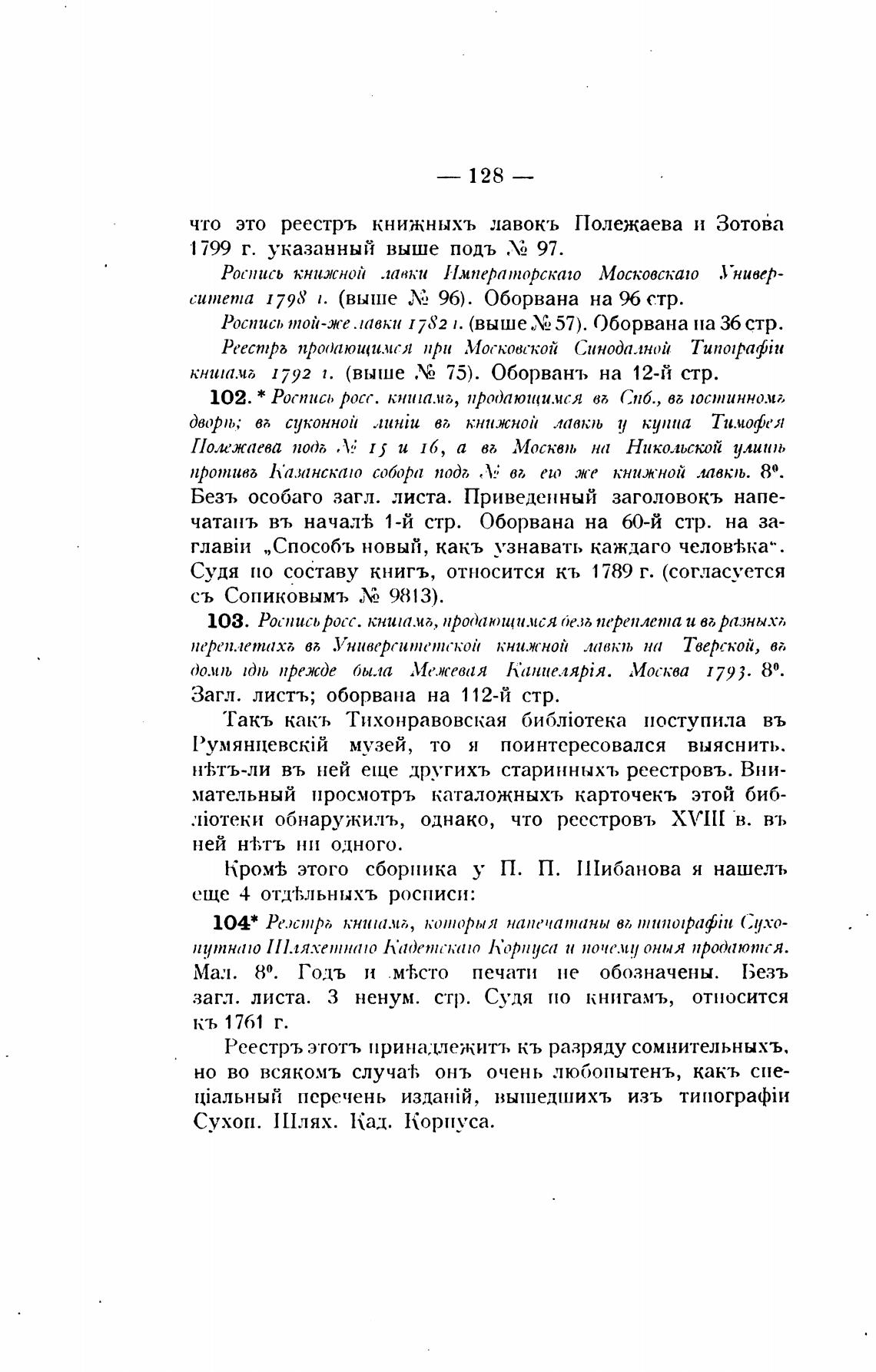 что это реестръ книжныхъ лавокъ Полежаева и Зотова
