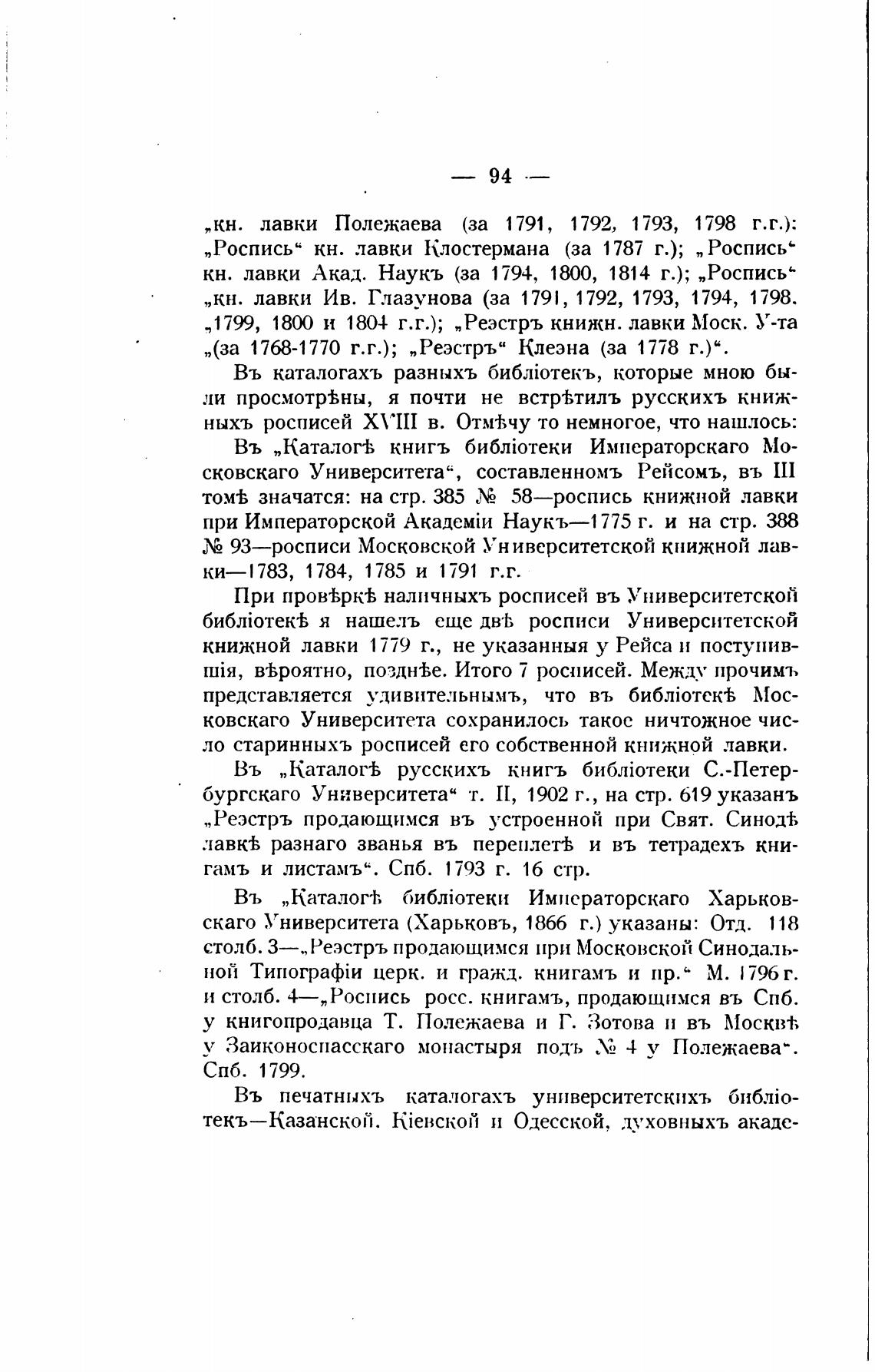 , 1799, 18(Х) и 1804 г.г.); „Реэстръ книжн. лавки Моск. У-та