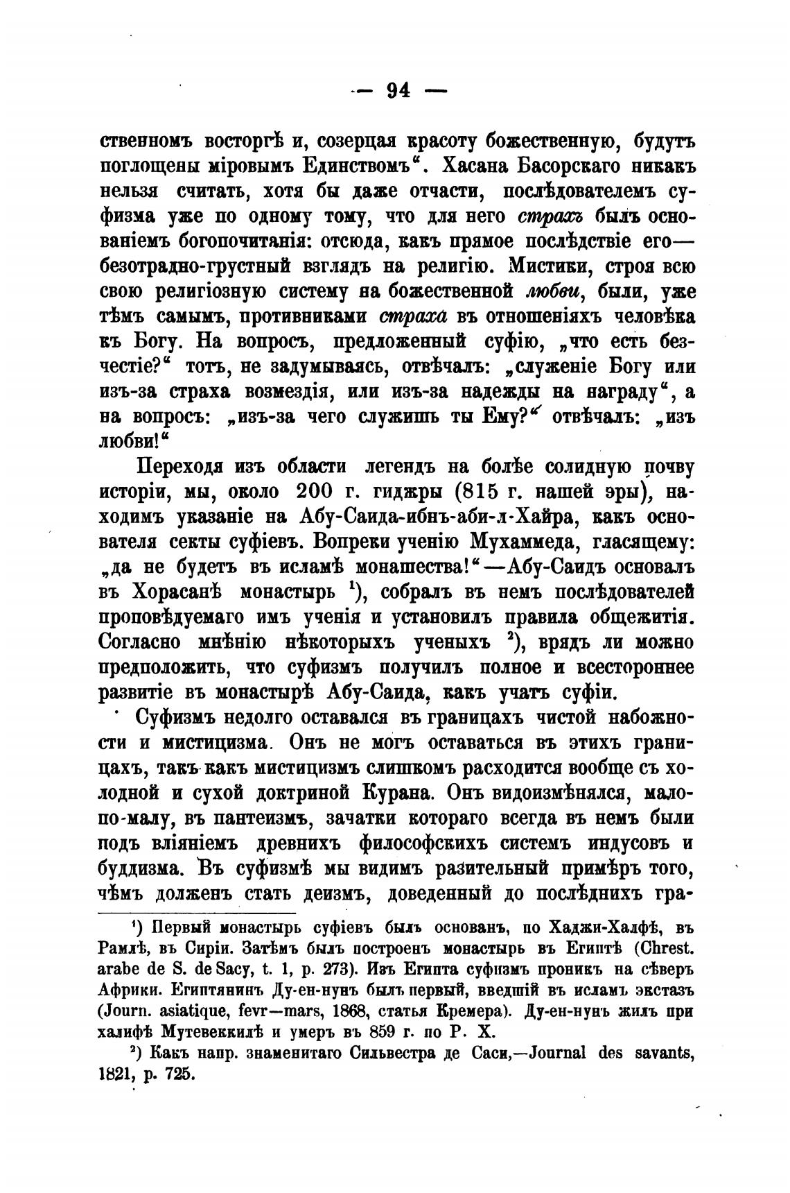 arabe de S. de Sacy, t. 1, р. 273). Изъ Египта суфизмъ проникъ на (Аверь