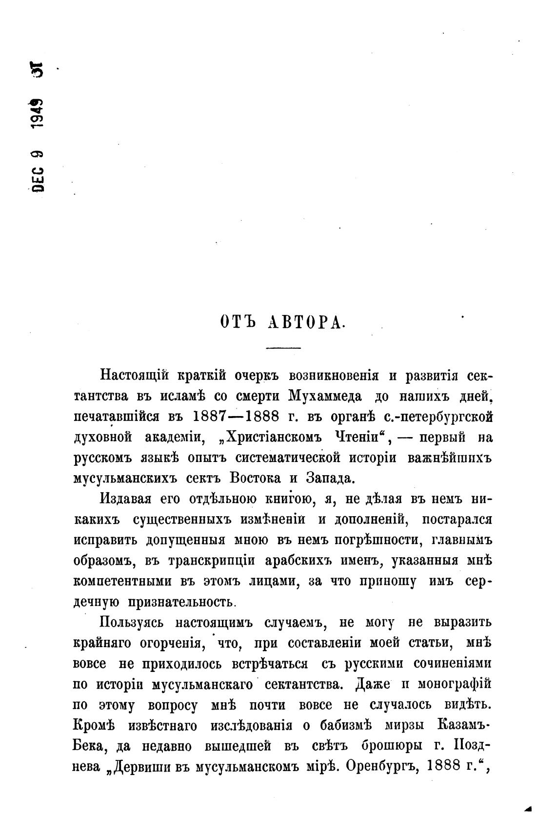 по мусульманскаго сектантства. Дате п