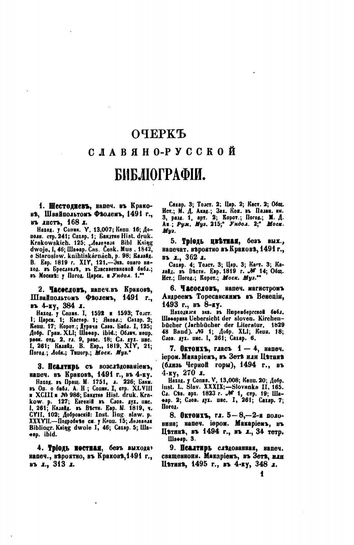 Bibliogr. ksiqg dwoie 1, 46; Сахар. 5; Ша—