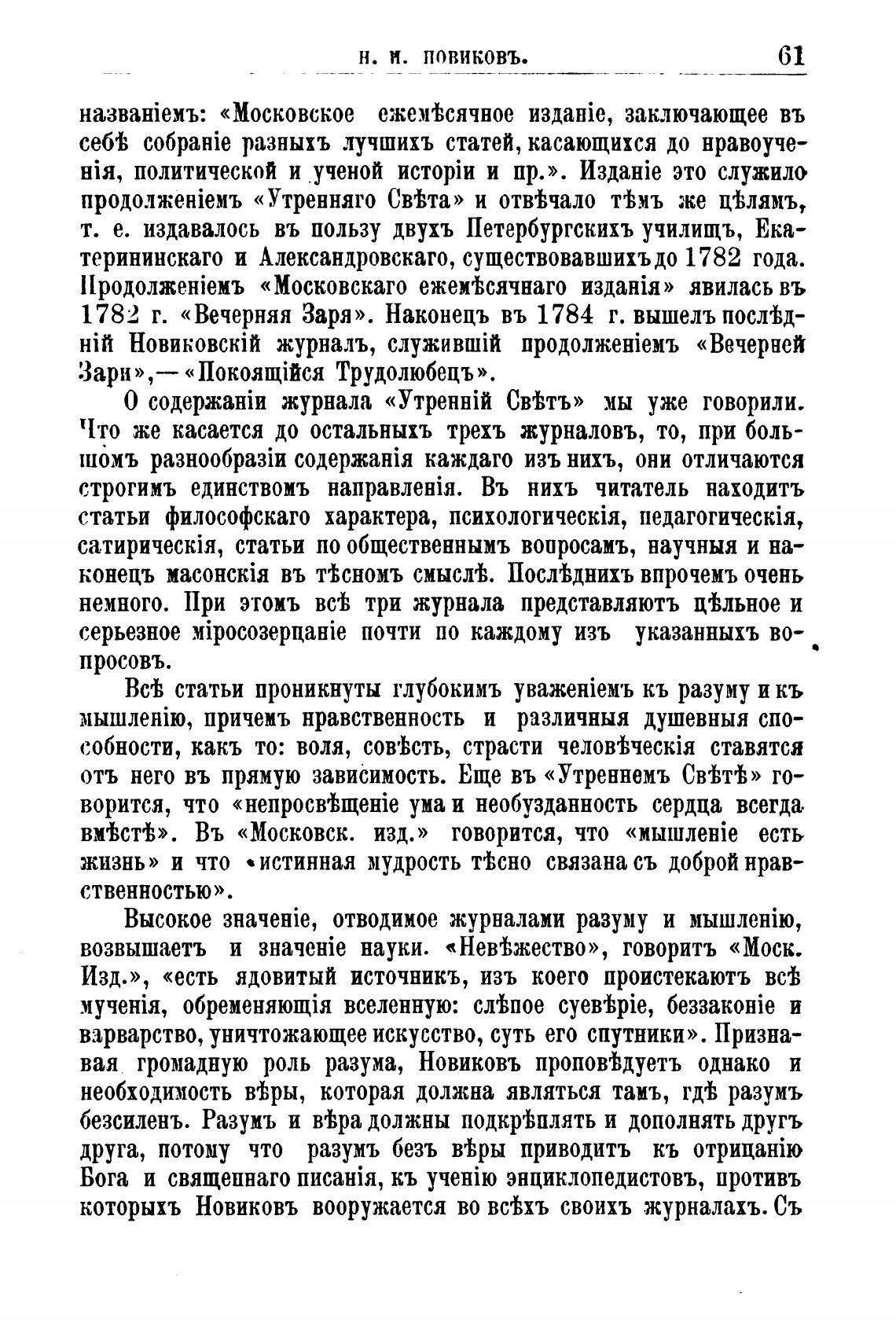 вая громадную роль разума, Новиковъ пропойдуетъ однако и