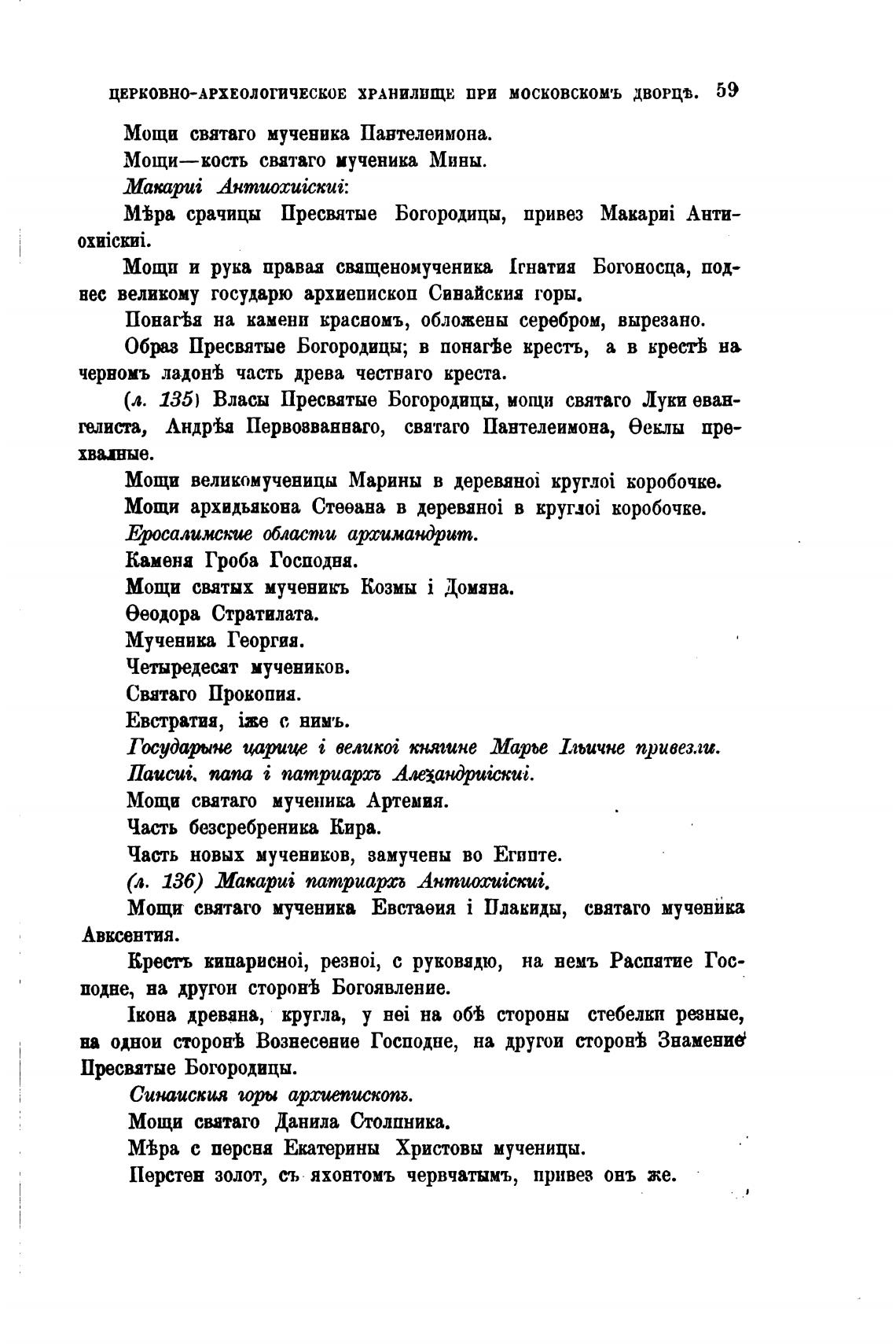 (л. 135) Власы Пресвятые Богородицы, мощи святаго Луки еван-