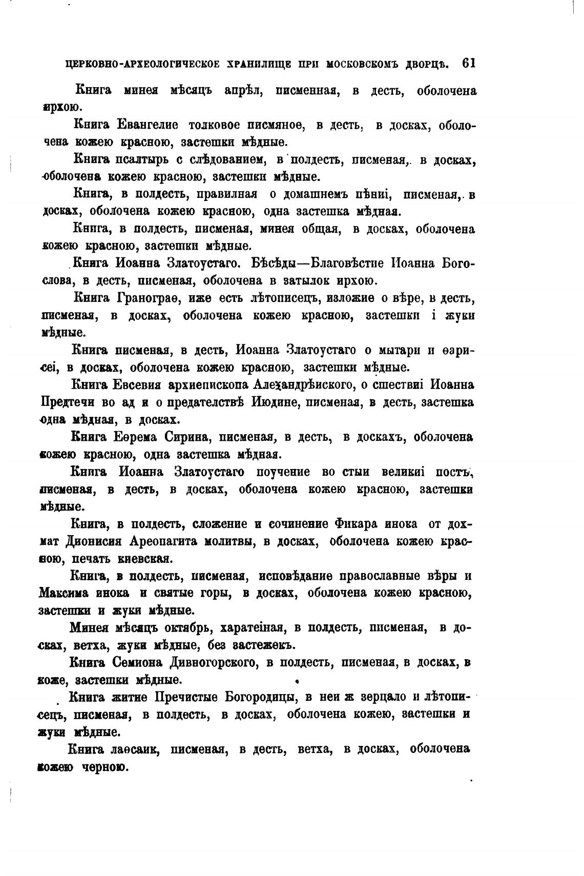 ЦЕРКОВНО-АРХЕОЛОГИЧЕСКОЕ ХРАНИЛИЩЕ при МОСКОВСЕОМЪ ДВОРЦ•в. 61
