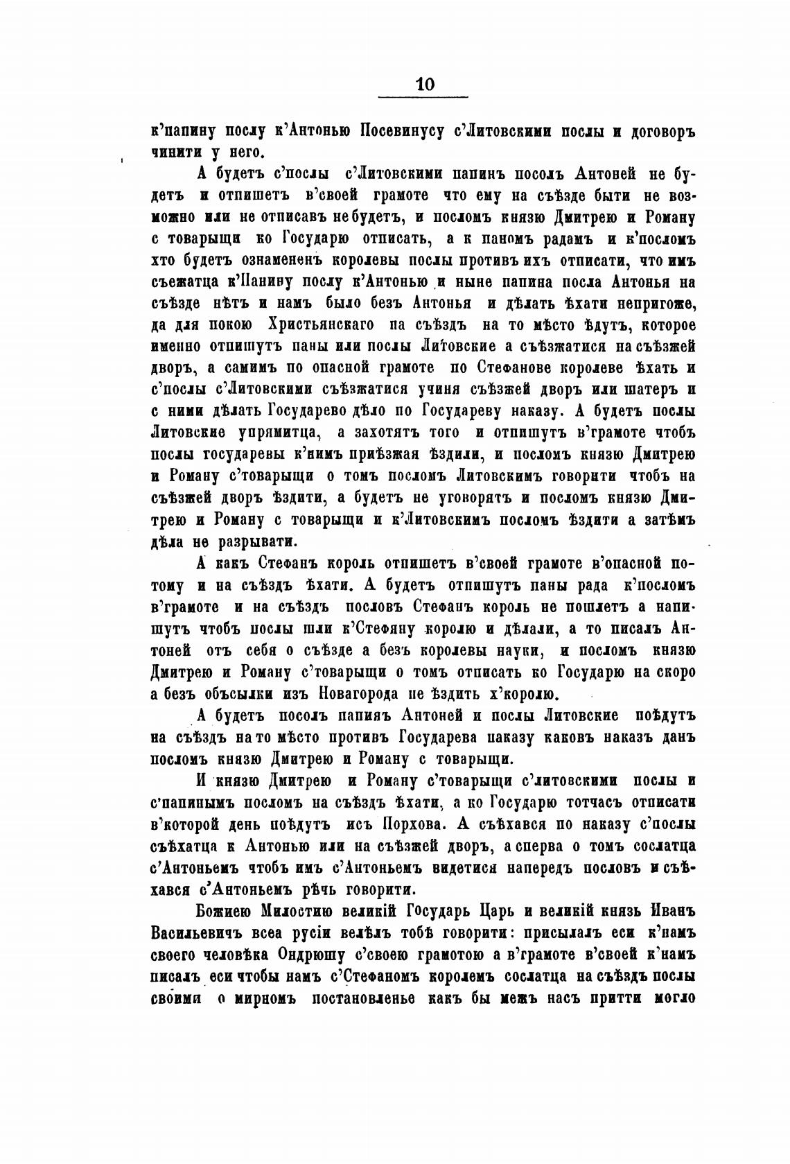 шутъ чтобъ послы пни к'Сте•яну жором и одни, а то писал Ан-