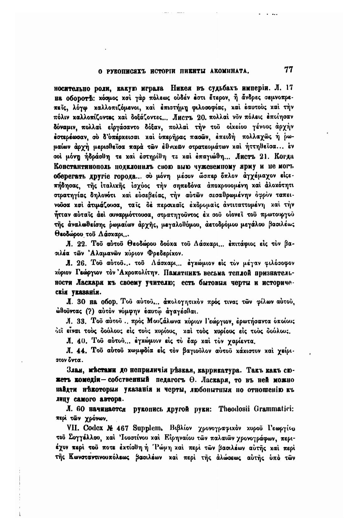 о рукописяхъ ИСТОПИ ПИВИТЫ АКОМИНАТА.