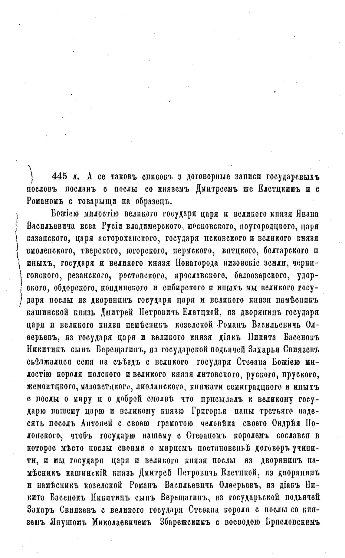 445 л. А се таковъ списокъ з договорные записи государевы;ъ
