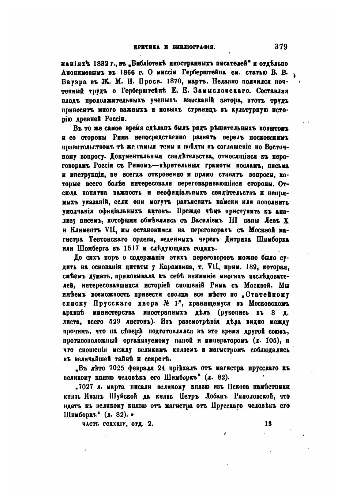тепннй трудъ о ГерерштеИп•К Е. Е. Заинсховскаго. Ъстаиаа