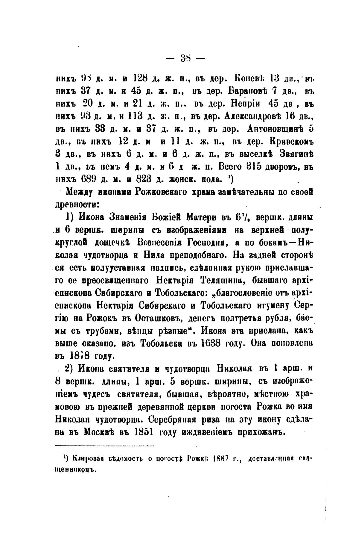 1) Клировая ВЁДОМОСТЬ о погостЬ Рожк1; 1887 г., достава.•цпая сва-