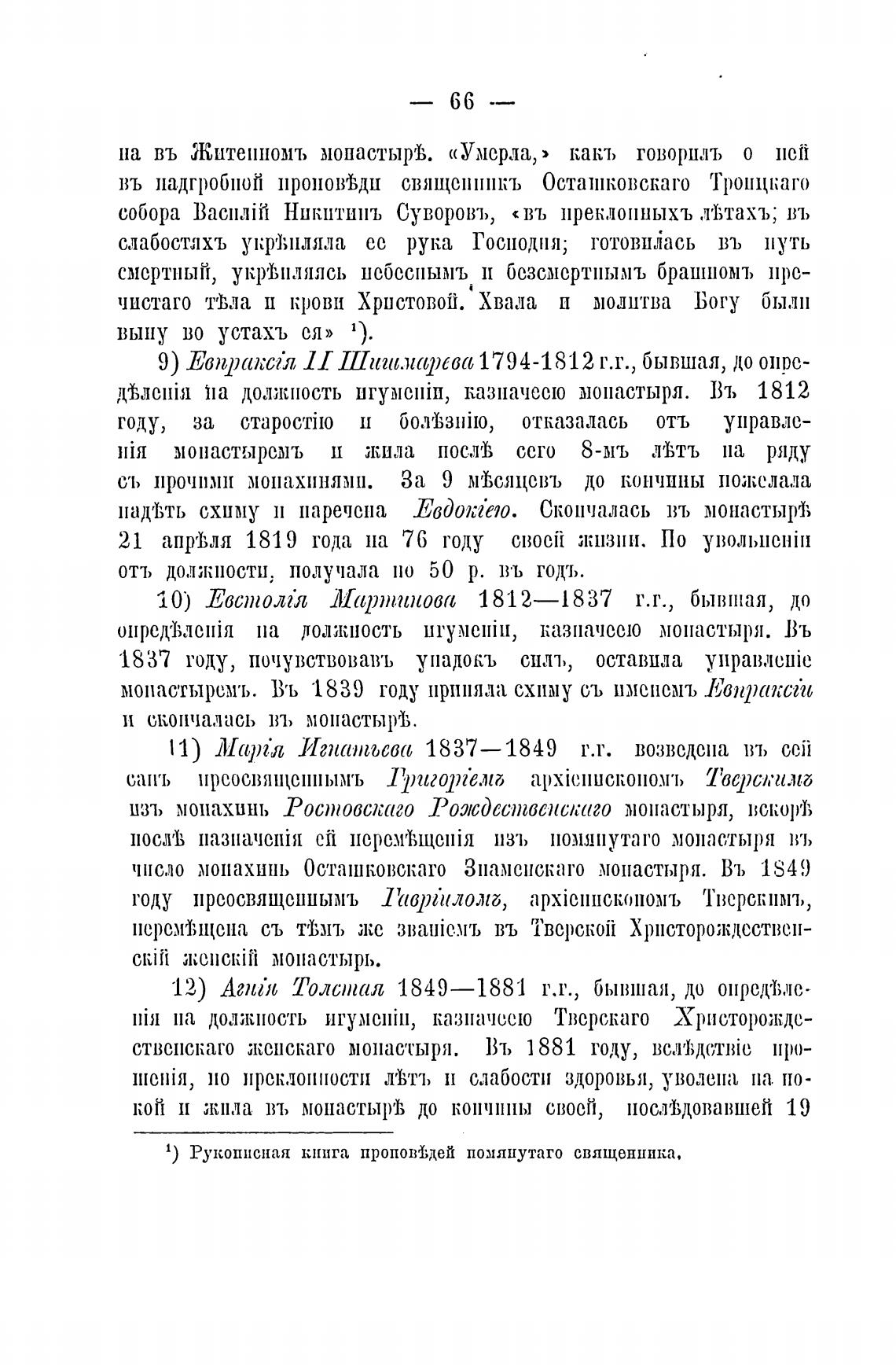 чПс.ло монахинь Осташковскаго Зпамснскаго монастыря. Въ 1849