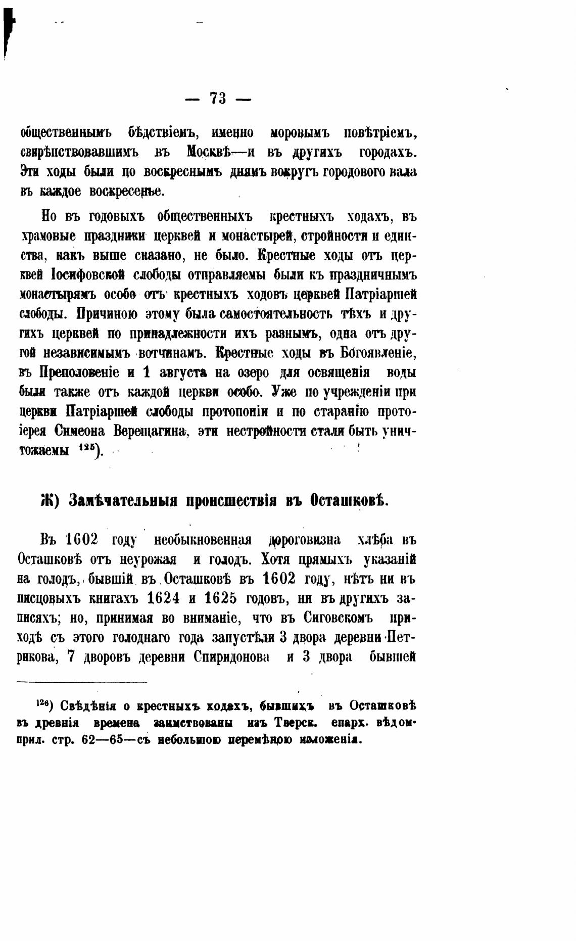 126) о врестныхъ ходехъ, бывшикъ въ Осташкой