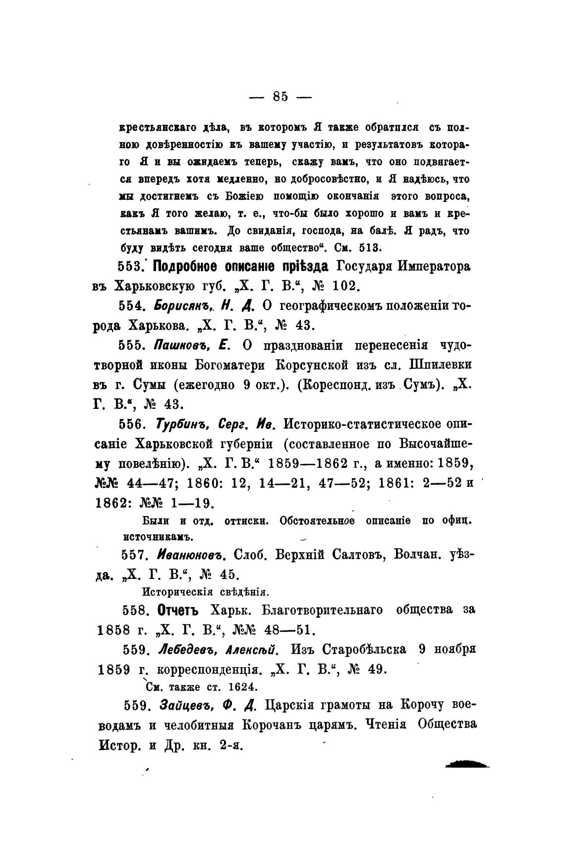 caHie Харьковской (составленное по Высочайше-