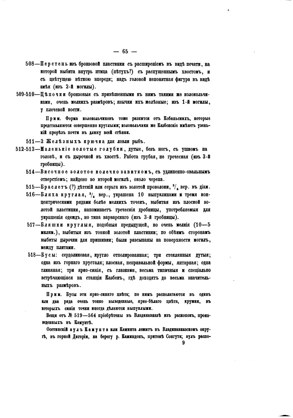отъ 519—564 прМр•Втены въ Владивавказ% изъ расвопокъ, прив•