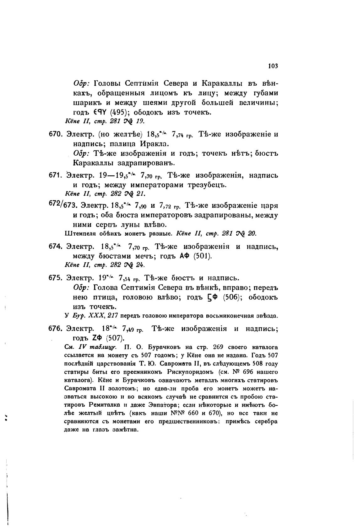 каталога). Кёне и Бурачковъ означають металлъ многихъ статировъ
