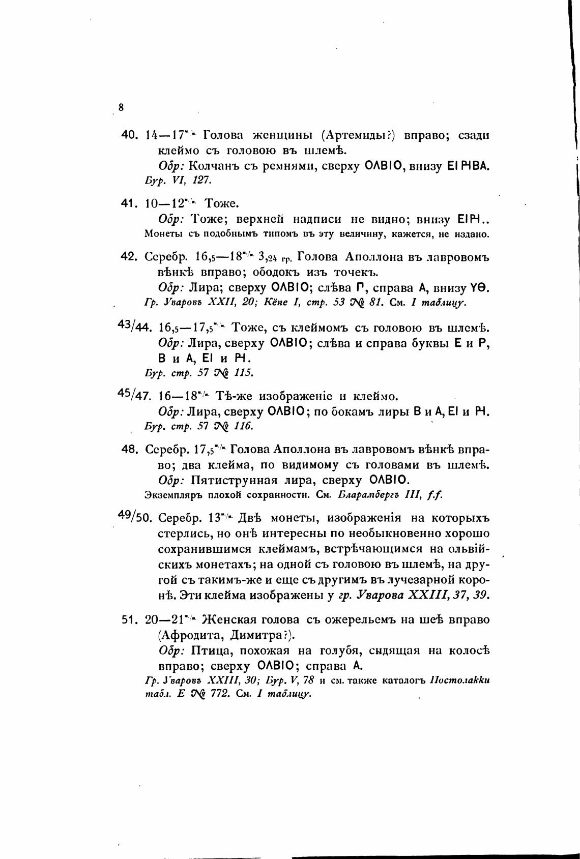 Гр. Уварова XXII, 20; Кёне 1, стр. 53 81. См. таблицу.