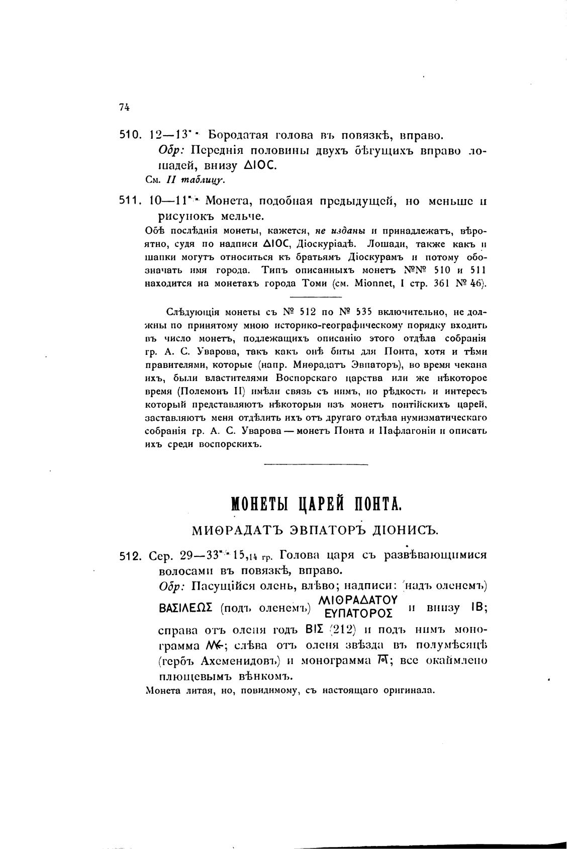 c06paHi$1 гр. А. С. Уварова — монетъ Понта и и описать
