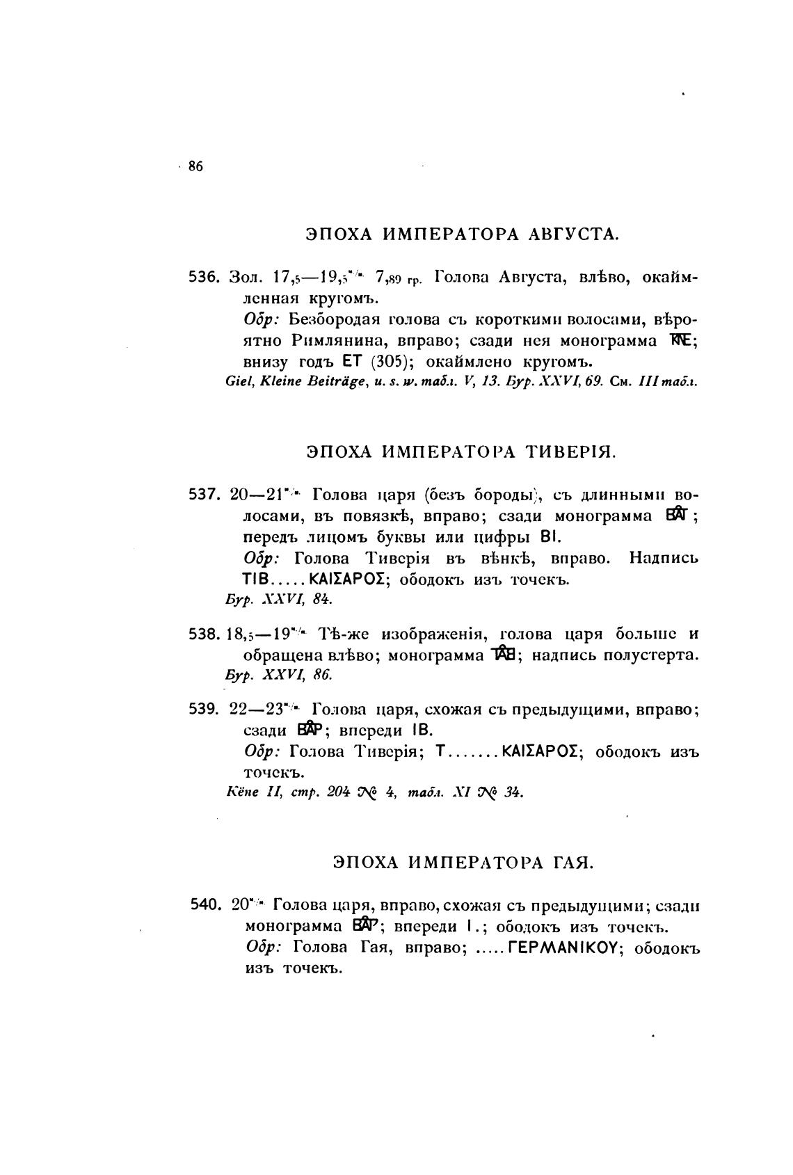 539. 22—23“ Голова царя, схожая съ предыдущими, вправо;