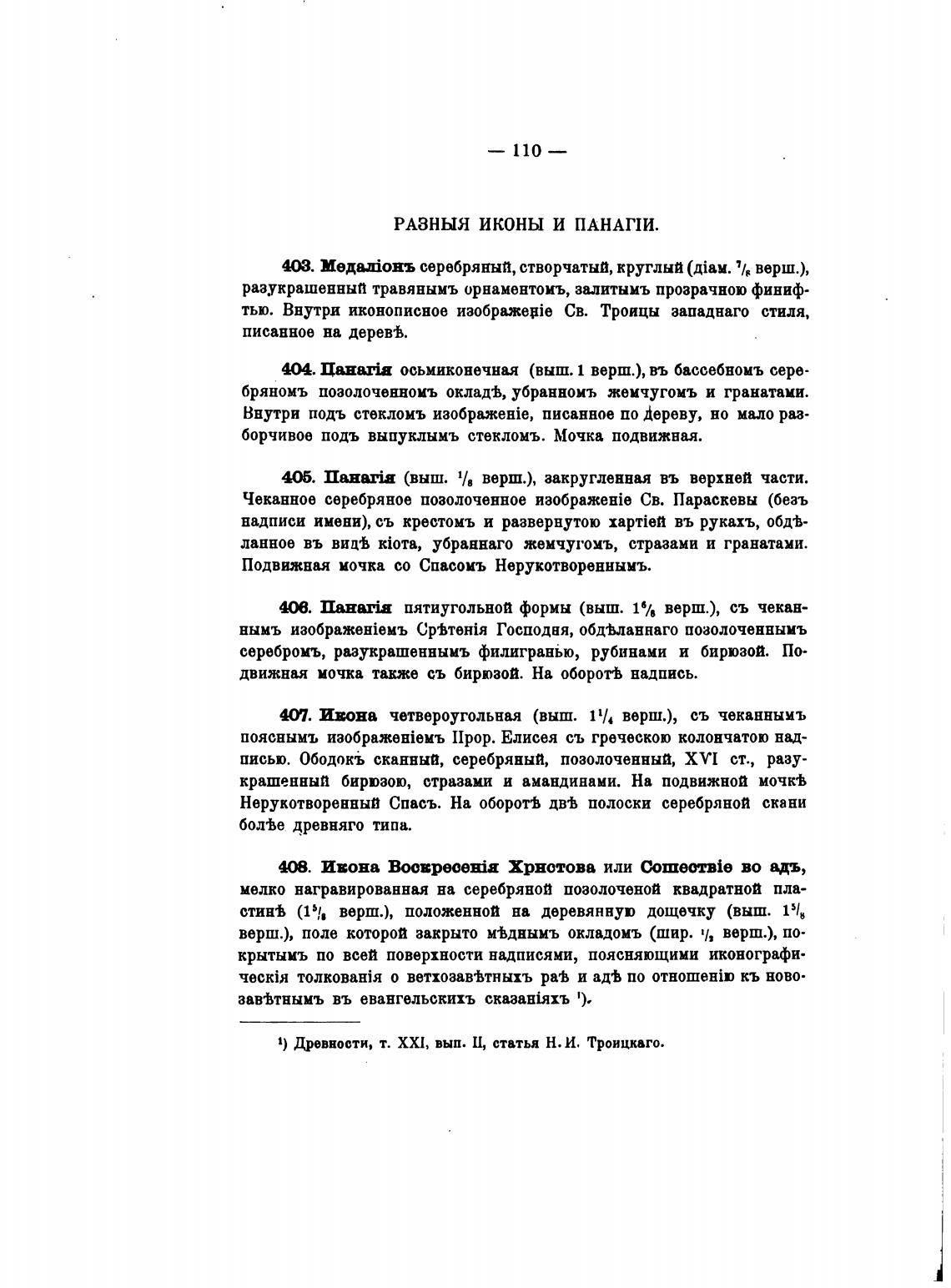 1) Древности, т. ХХ1, вып. Щ статья Н. И, Троицкаго.