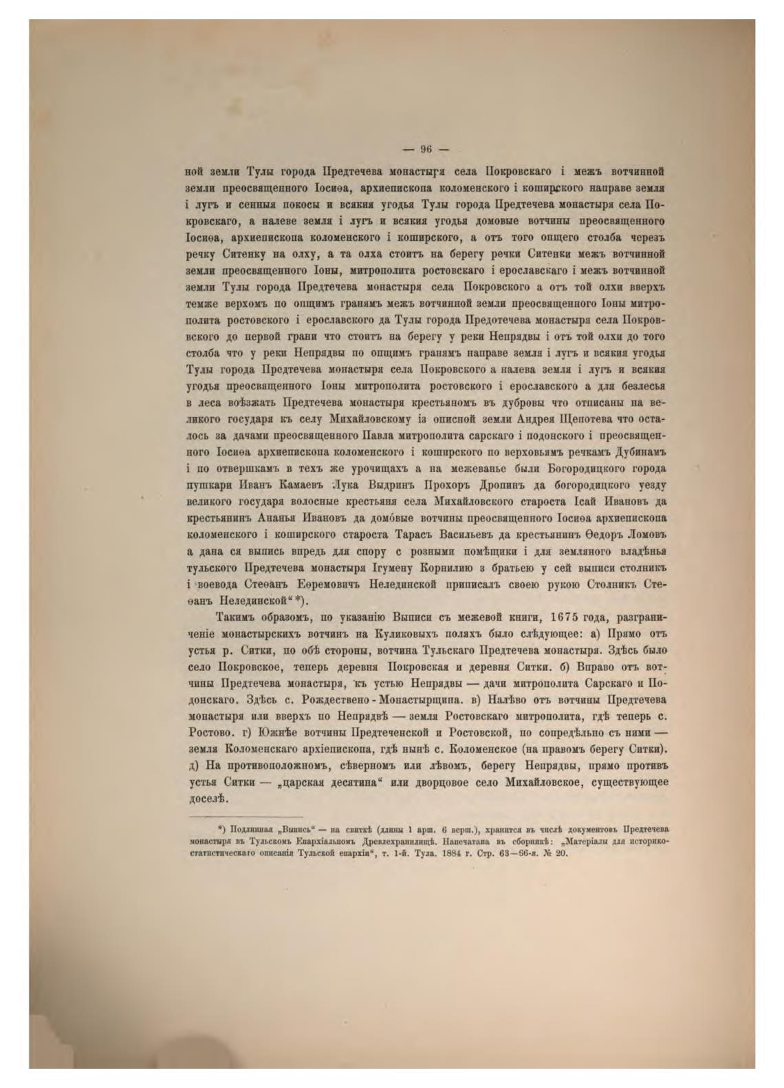 земли Тулы города Предтечева монастыря седа Покровского а отъ той олхн вверх•ь