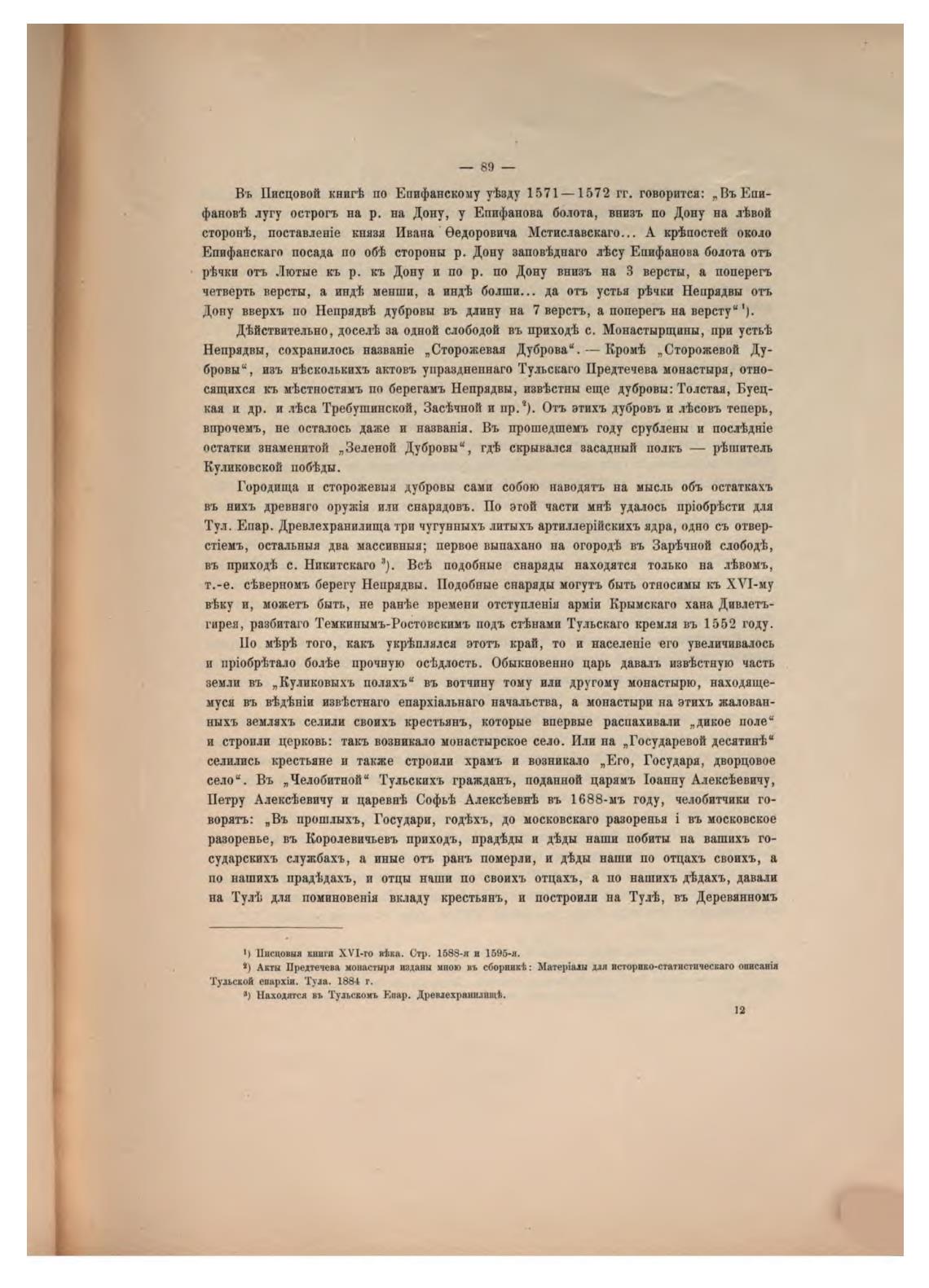 Въ Писцовой книг•ћ по Епифанскому укзду 1571— 1572 гг. говорится: , Въ Ети-