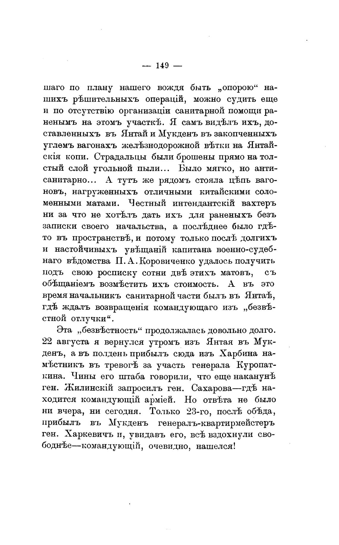 время начальникъ санитарной части быль въ Янта±,