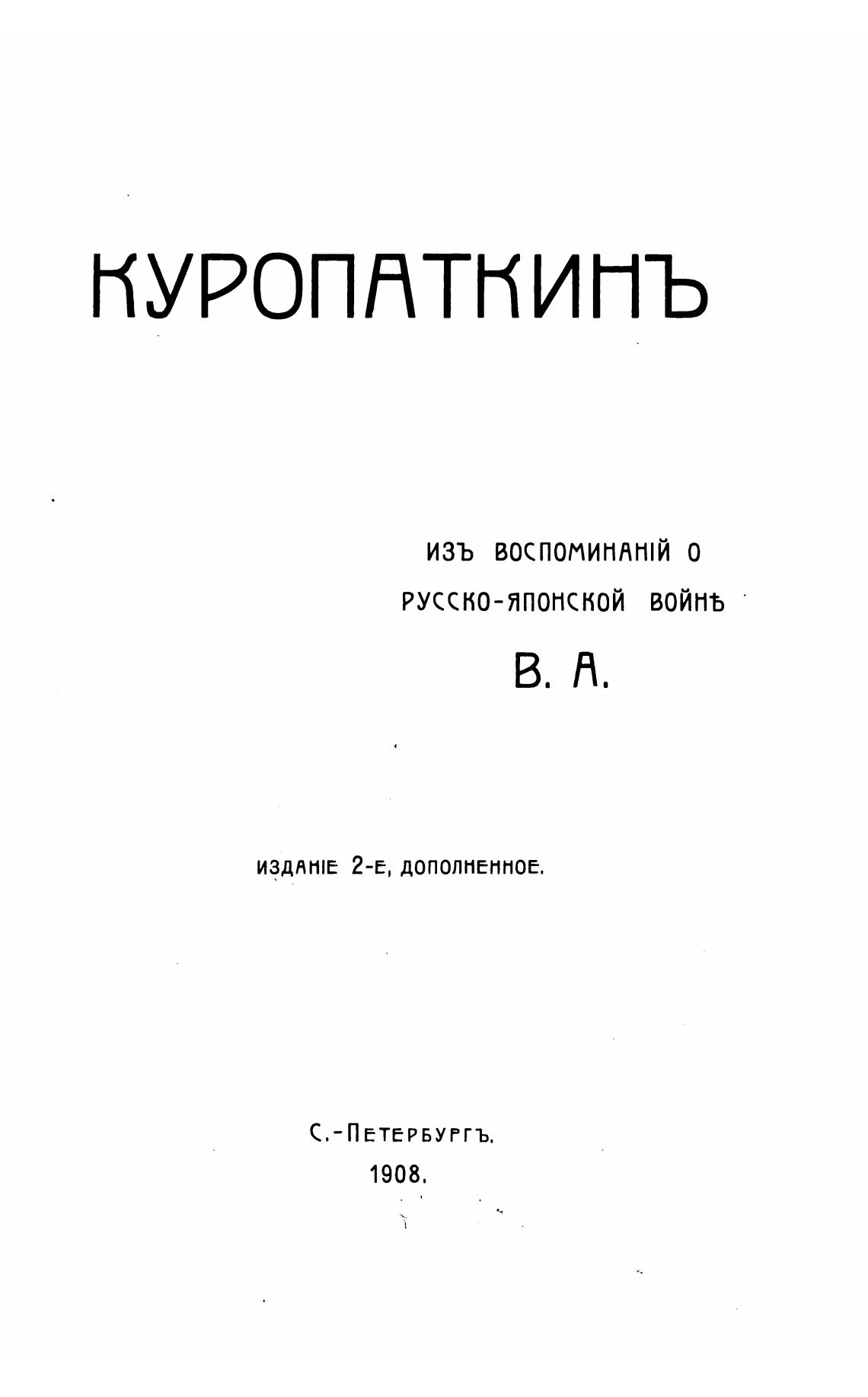 Куропаткин. Из воспоминаний о русско-японской войне. Изд. 2-е, доп. - В. А.